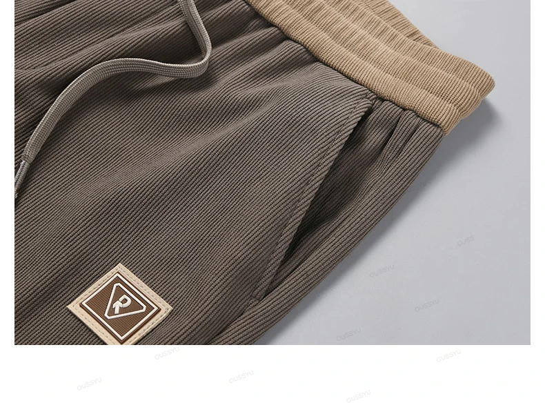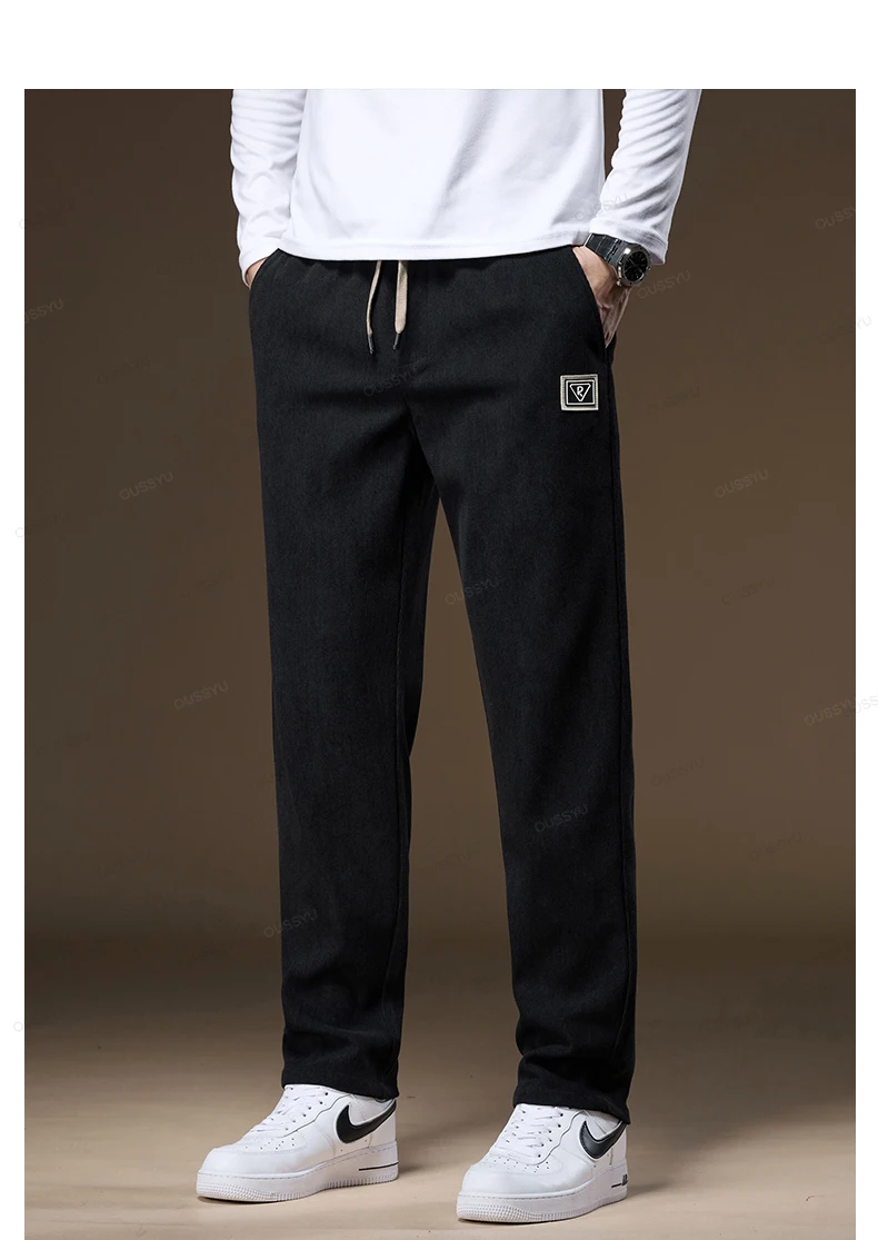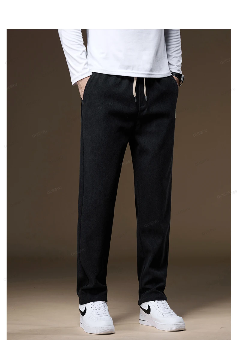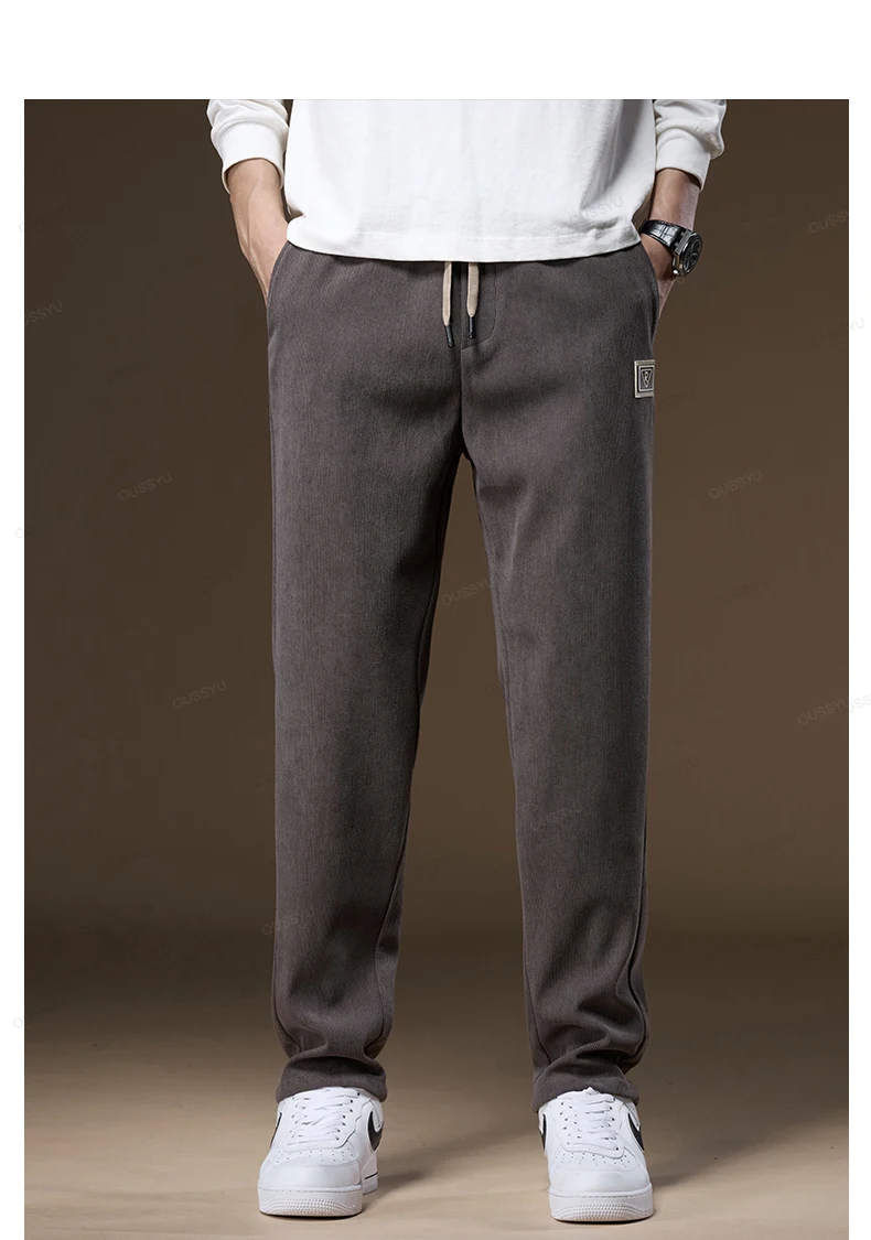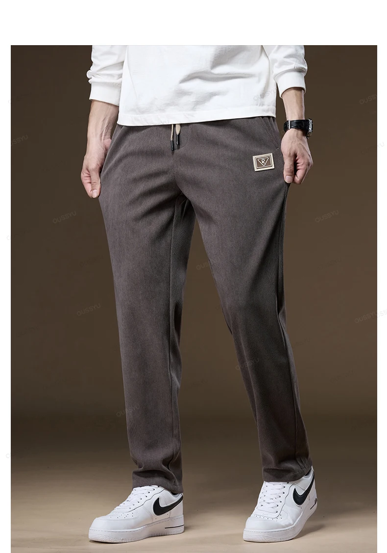 OUSSYU Brand Clothing Autumn Winter Corduroy Pants Men Elastic Waist Thick Outdoors Classic Sports Casual
