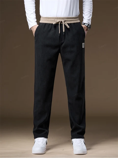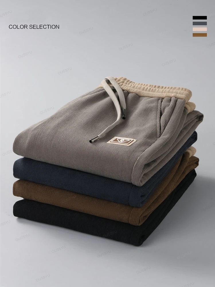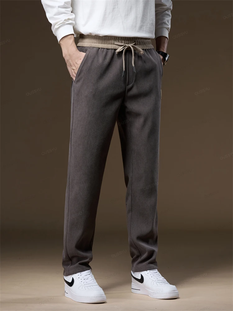 OUSSYU Brand Clothing Autumn Winter Corduroy Pants Men Elastic Waist Thick Outdoors Classic Sports Casual