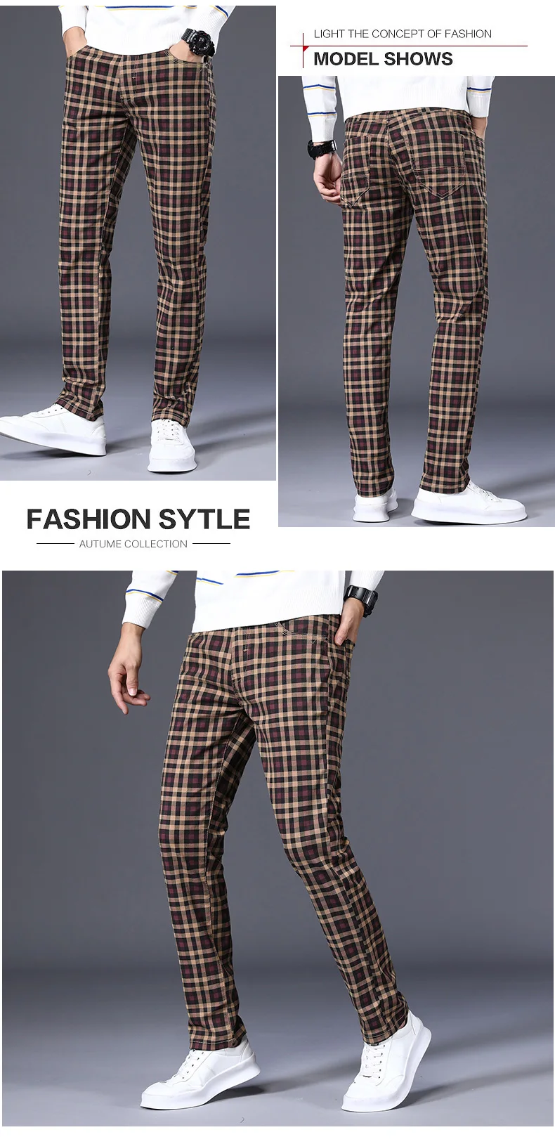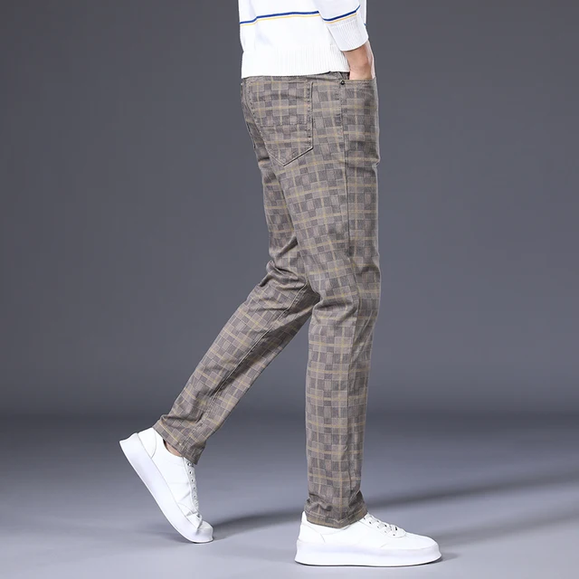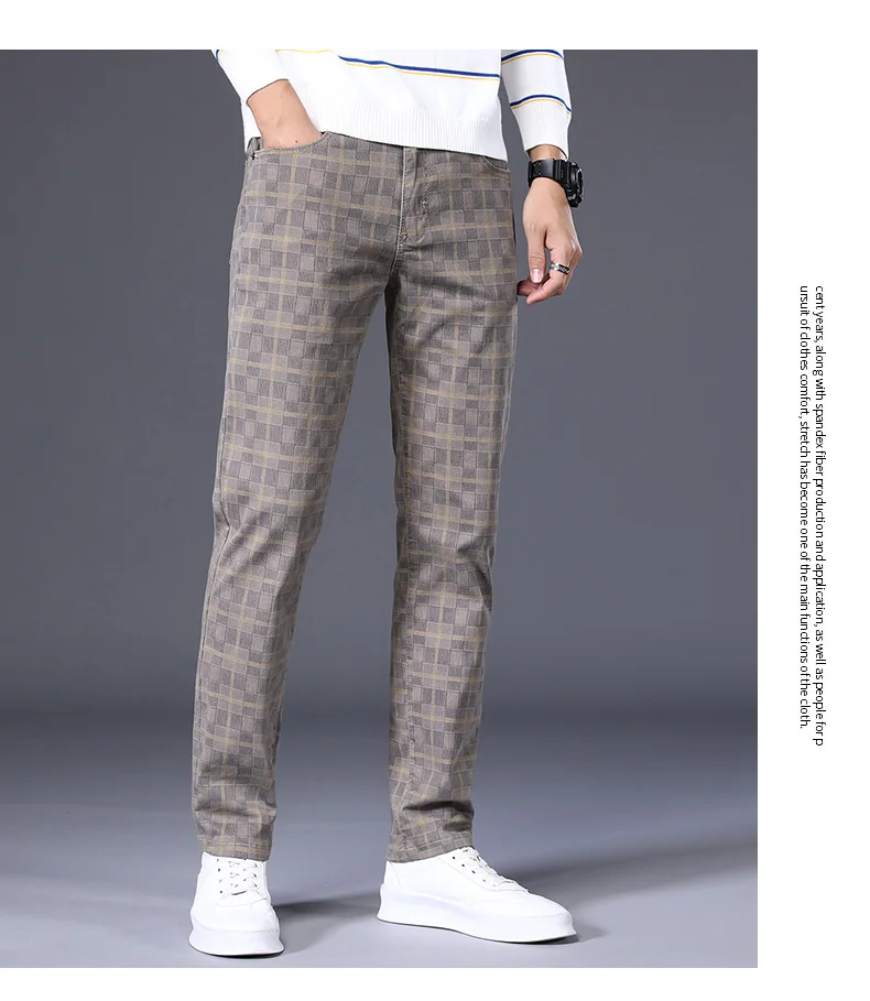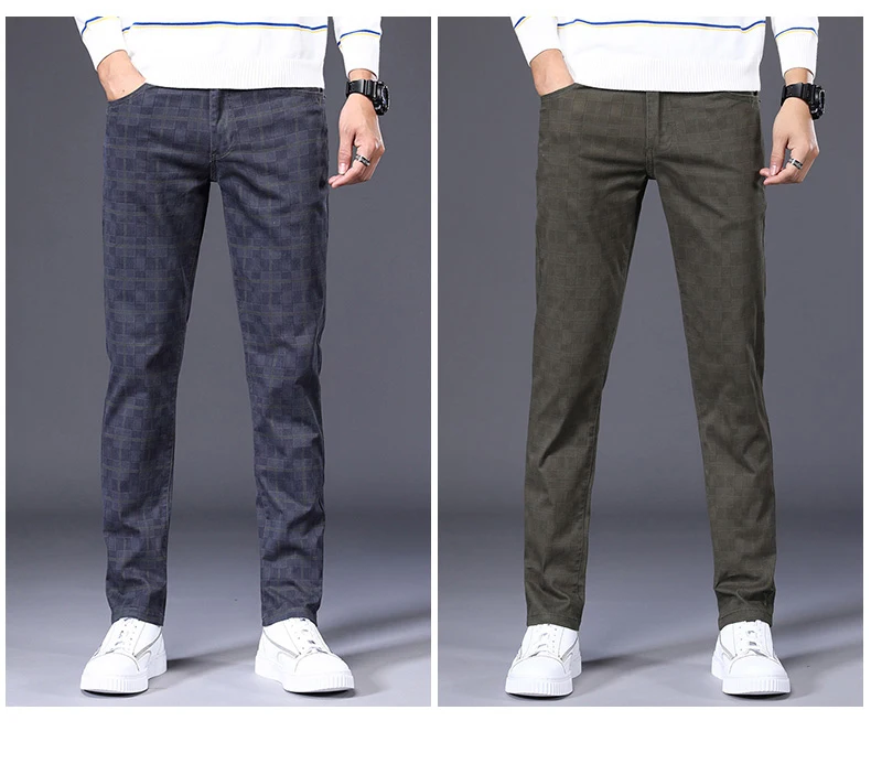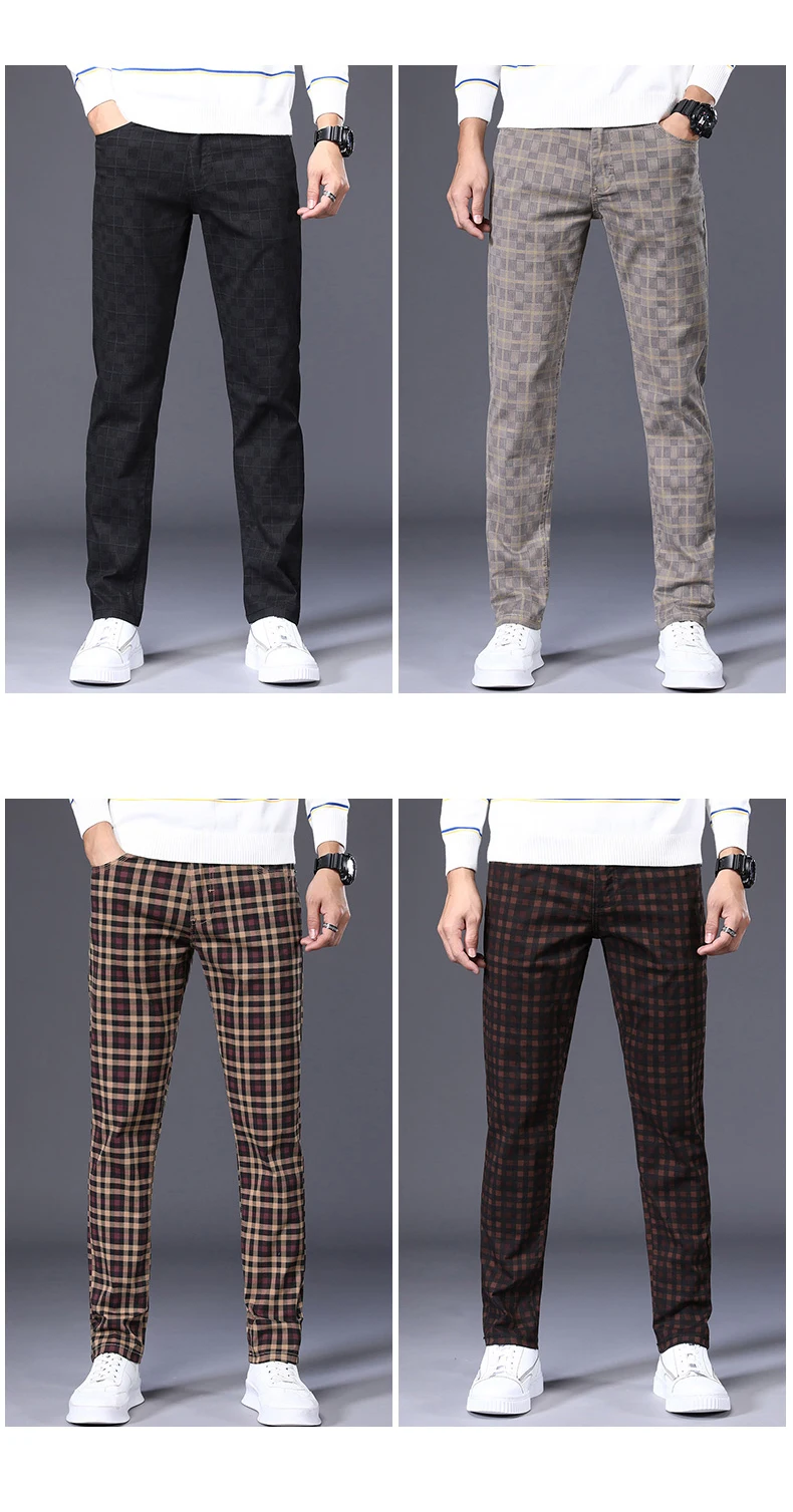 Spring Classic Men's Slim Fit Cotton Plaid Casual Pants Classic Style Business Fashion Stretch Trousers Male Brand Clothes
