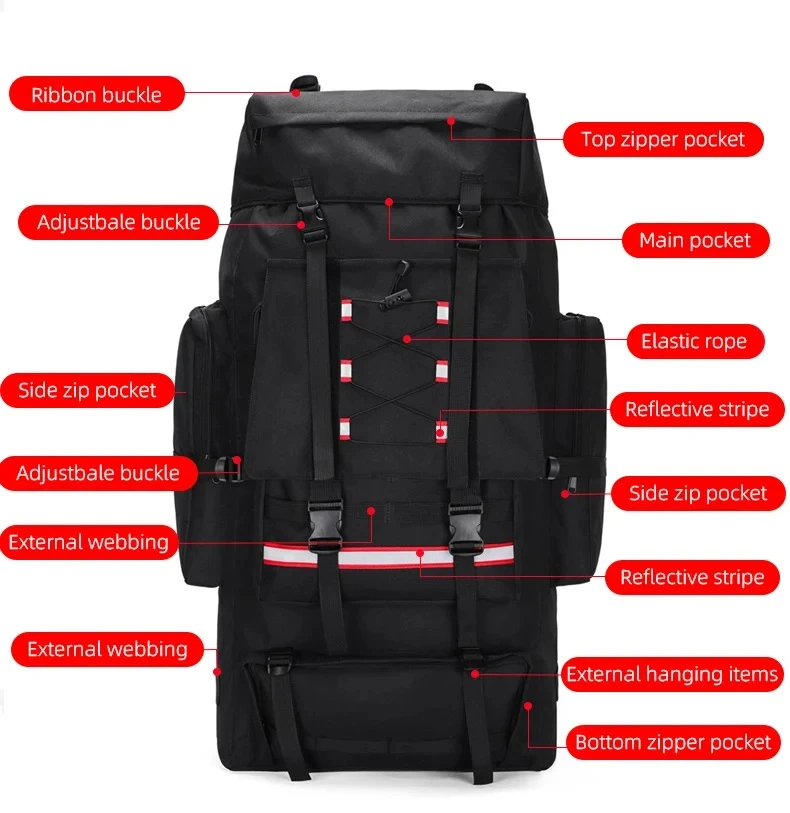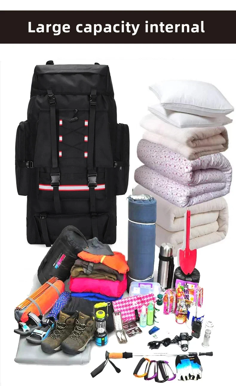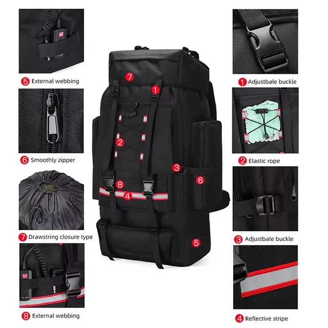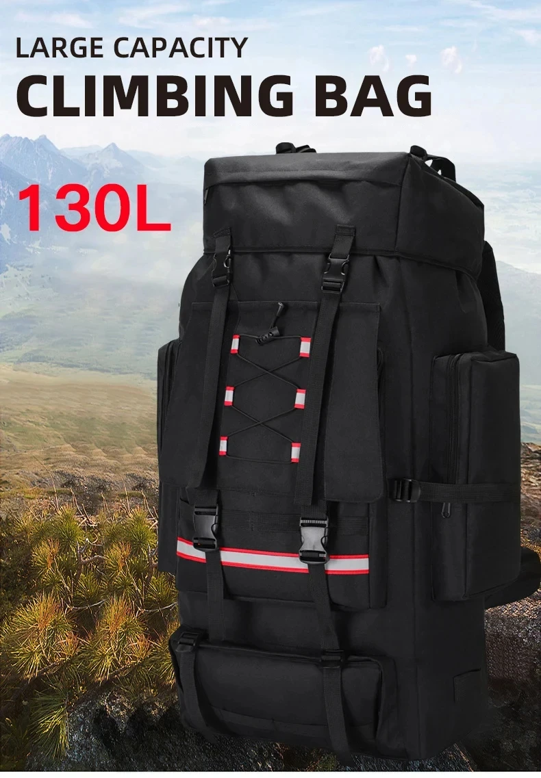 130L Camping Backpack Hiking Bags Men Outdoor Trekking Sports Pack Molle Fishing Rucksack Climbing Bag with Reflective Stripe