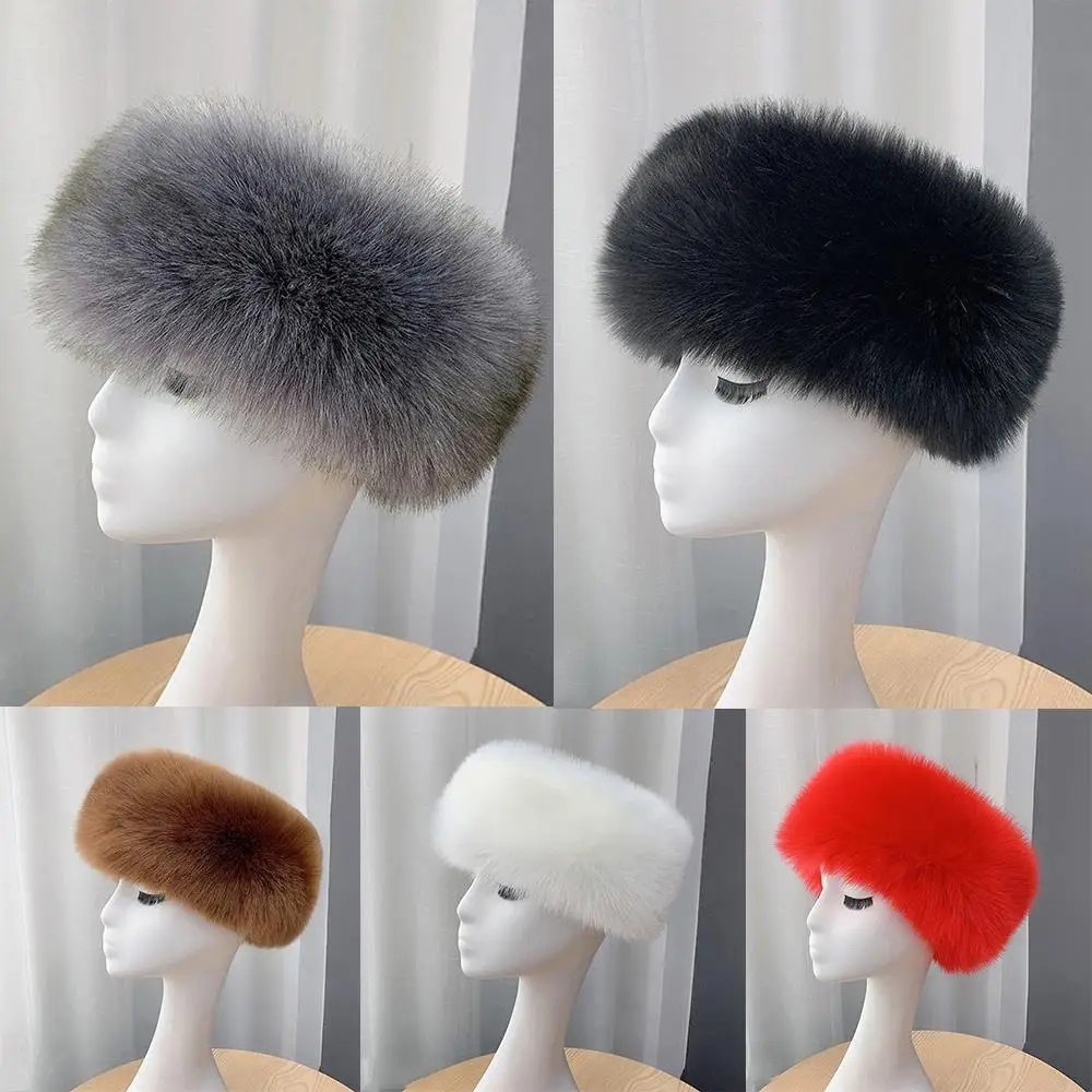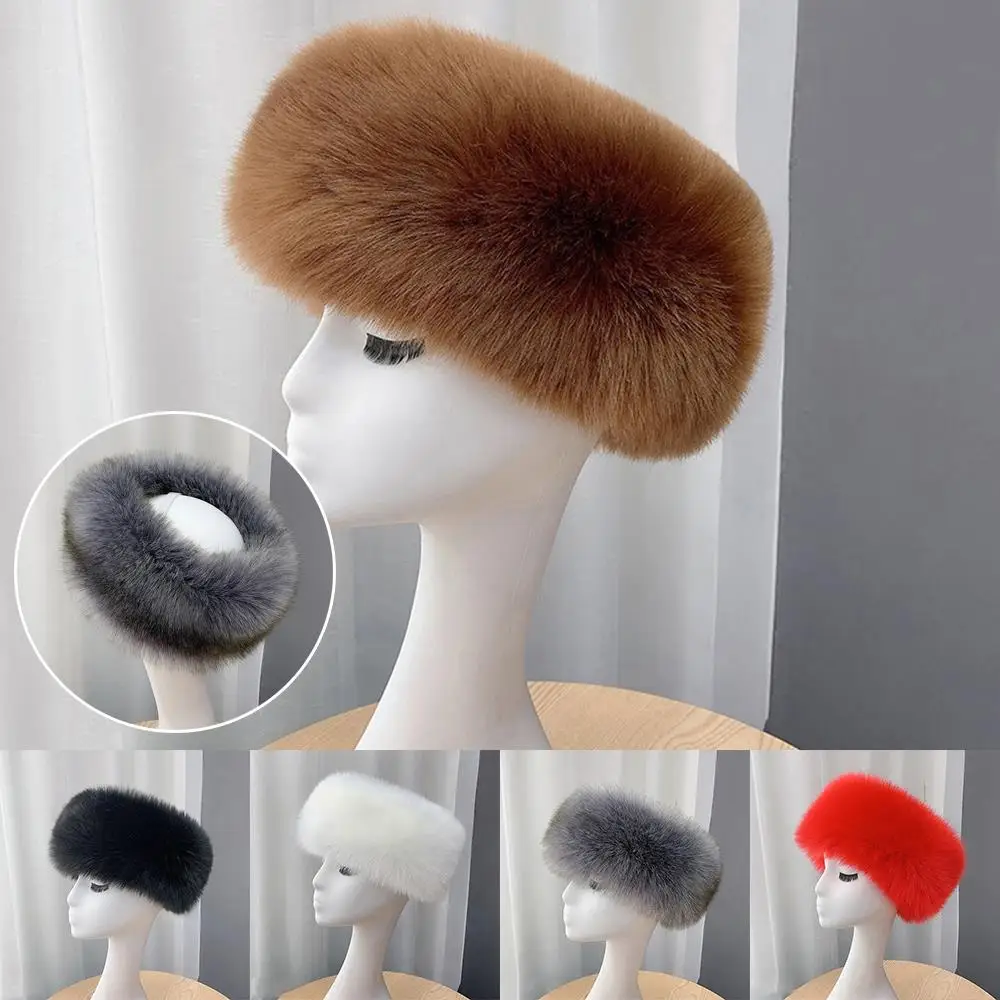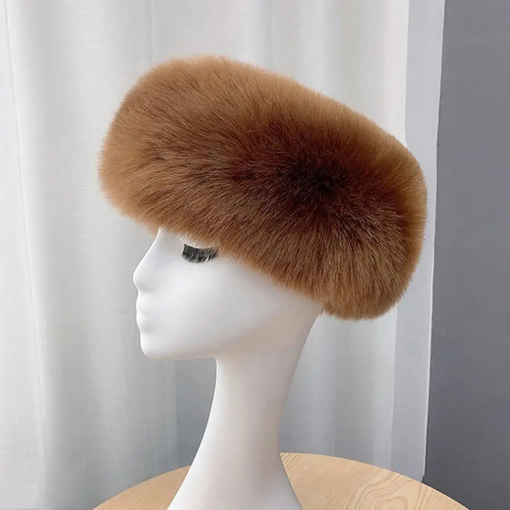 Thick Warm Furry Hairband Ski Snow Ear Warmer Earmuff Plush Solid Color Head Cover Outdoor Sport Ski Beanie Hat Fashion Simple