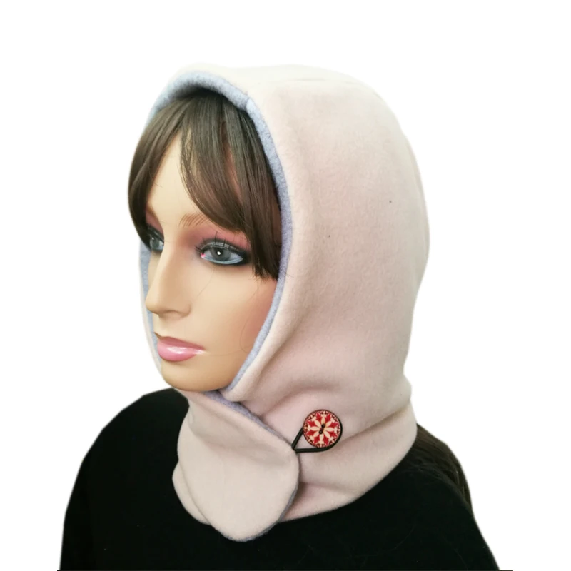 Outdoor Winter Warm double color Hat For Women Thick Double Full Face Mask Winter Neck Solid Plus cap hooded scarf with button