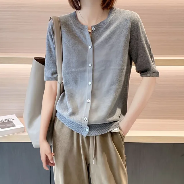 Outlet Ice Silk ort Sve Knitted Sweater Women Thin round Ne Open Cardigan Top Sli Summer Commute Slim Fit Polyester