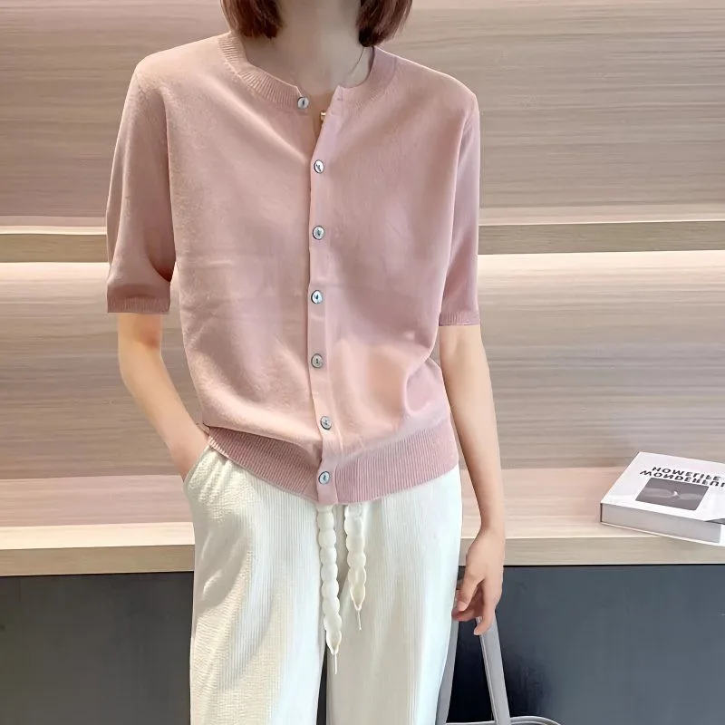 Be the first to review “Outlet Ice Silk ort Sve Knitted Sweater Women Thin round Ne Open Cardigan Top Sli Summer Commute Slim”