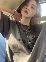Oversize Loose Fit Deep ey ort Sve T-irt Women’s American Retro Lazy Sle Casual Top Polyester Fiber