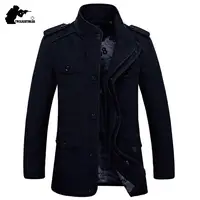 Autumn Winter Men's Long Wool Blends Coats England Style Solid Color Double Breasted Woolen Outerwear Men Smart Casual Trench