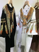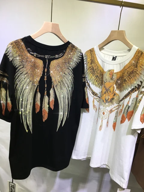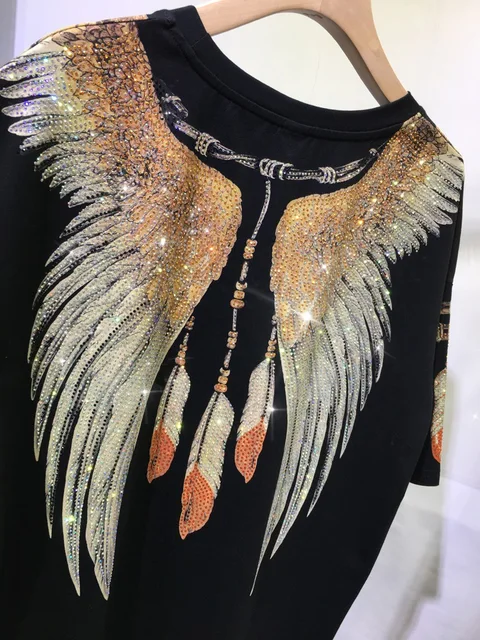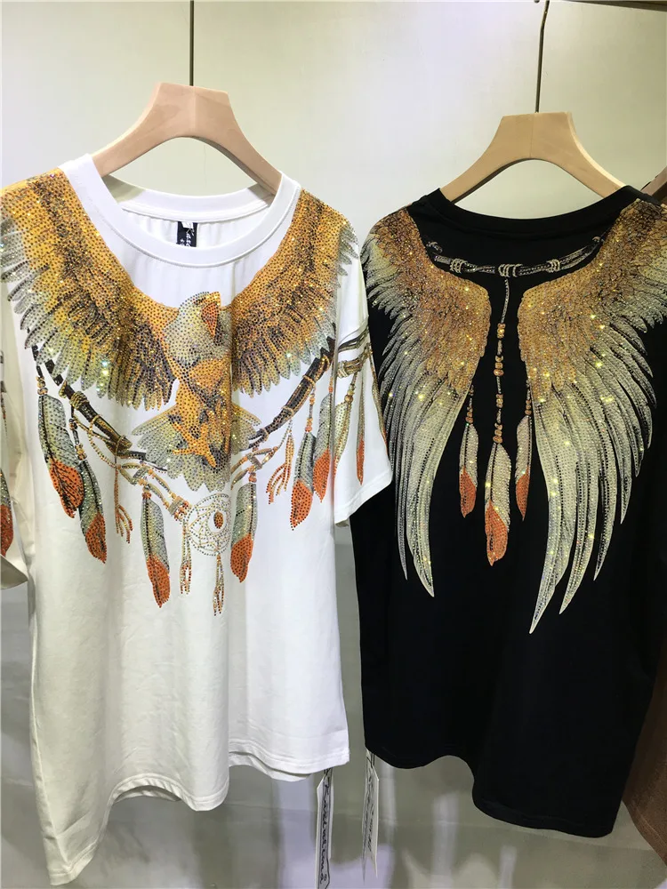 Oversized fashion Rhinestone Diamond Harley Eagle Double sided wing feather couple top Women’s