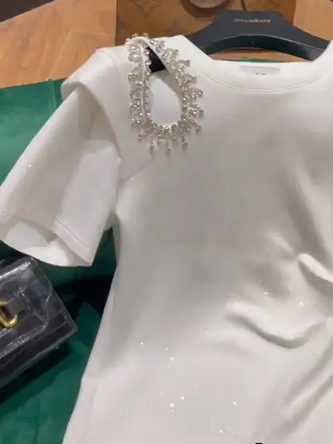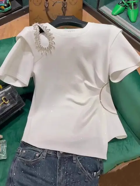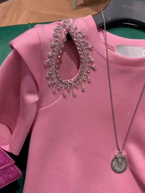 Oversized irregularly hollowed-out diamond-encrusted fashionable slimming off-the-shoulder women’s
