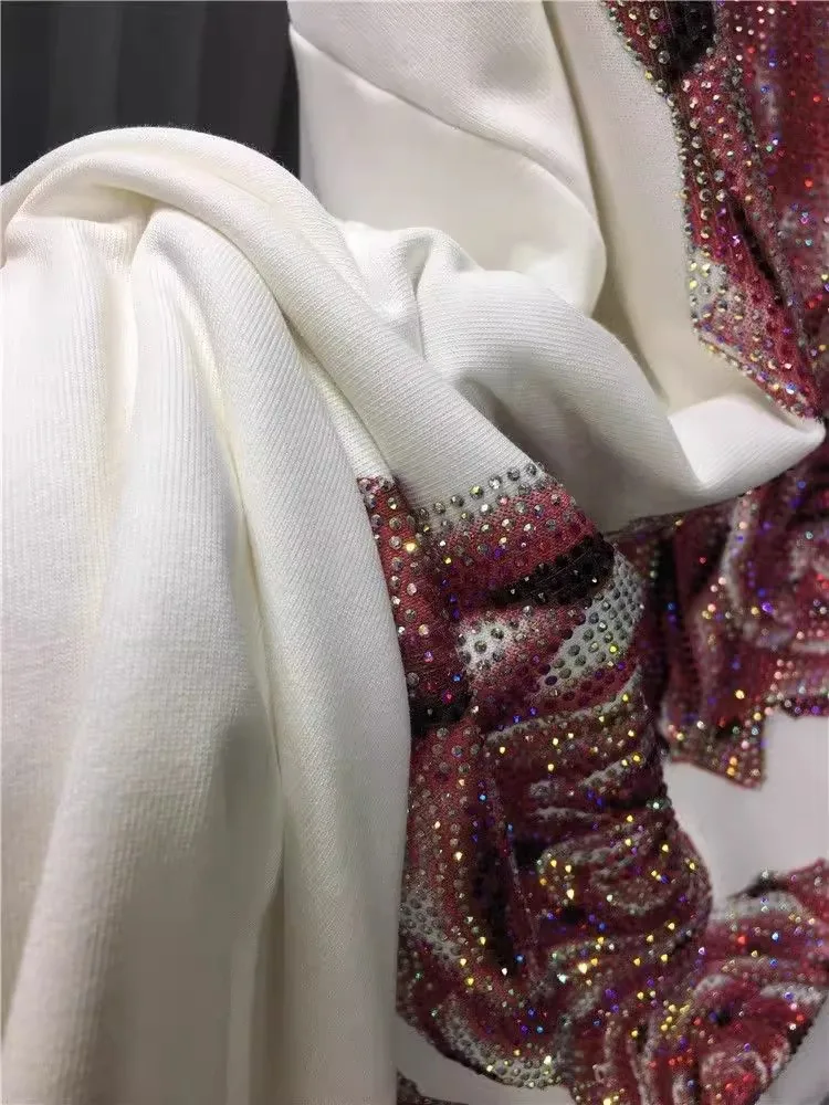 Oversized Rhinestone light luxury rose round-neck long-sleeved top pull-over women’s sportswear