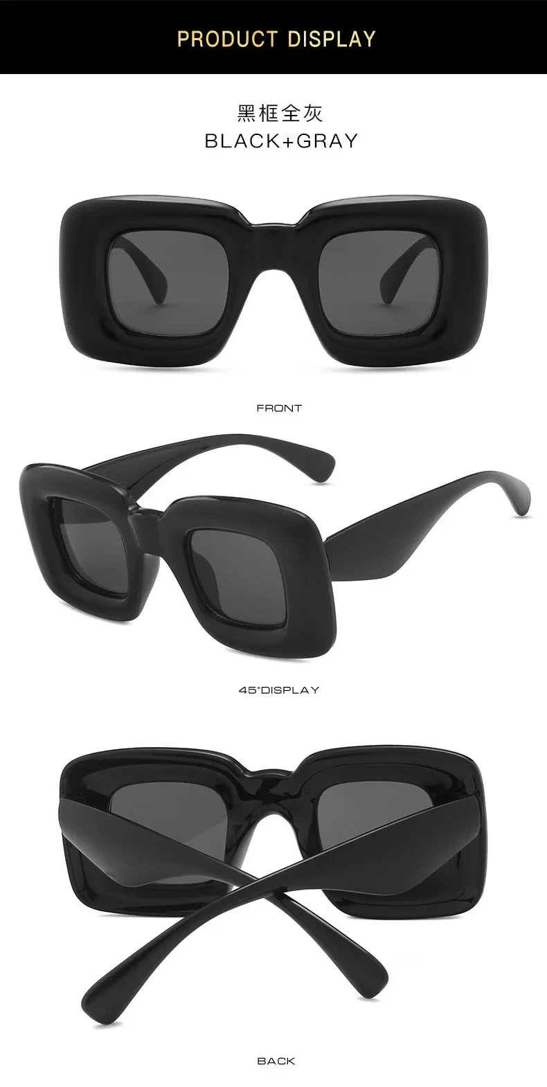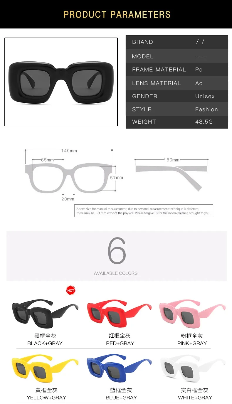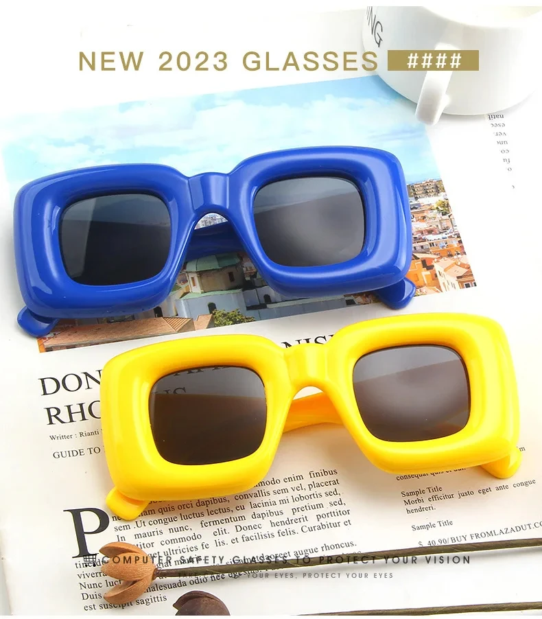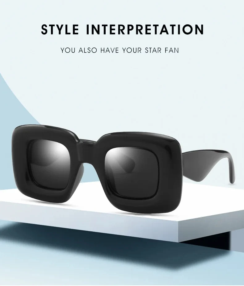 Oversized Square Sunglasses Men Women Fashion Inflated Frame Shades Eyewear Trendy New Design UV400 Goggle