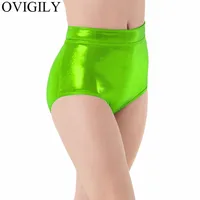 OVIGILY Women Black Metallic Shorts Mid Waisted Dancing Shorts for Adults Spandex Royal Blue Team Underpants Rave Booty Girls