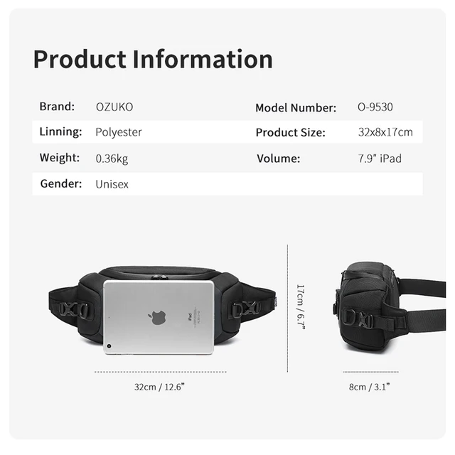 Be the first to review “OZUKO Fashion Men Waist Bag Outdoor Sports Tactical Chest Bag Multifunction Waterproof Male Fanny Pack”