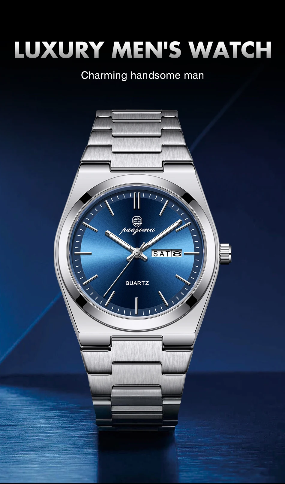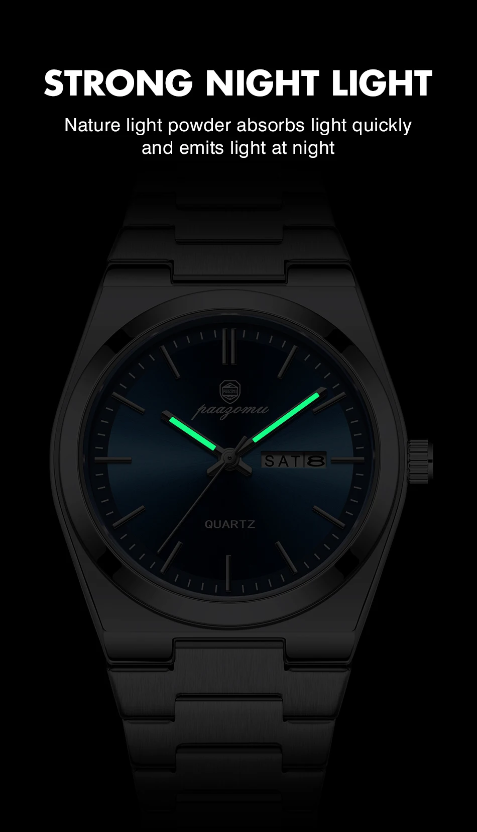 PAAZOMU Fashion Men’s Quartz Watch Stainless Steel Waterproof Luminous Man Watch Chronograph Date