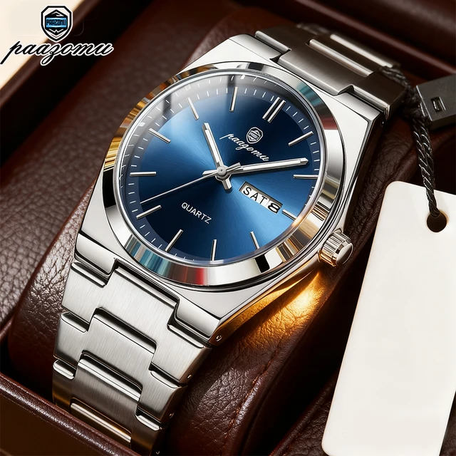 PAAZOMU Top Business Man Watch Luminous Waterproof Stainless Steel Men Wristwatch Date Week Quartz Fashion Casual Men's Watches