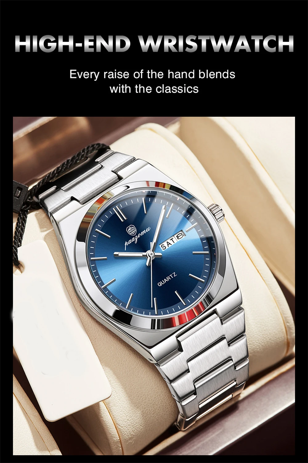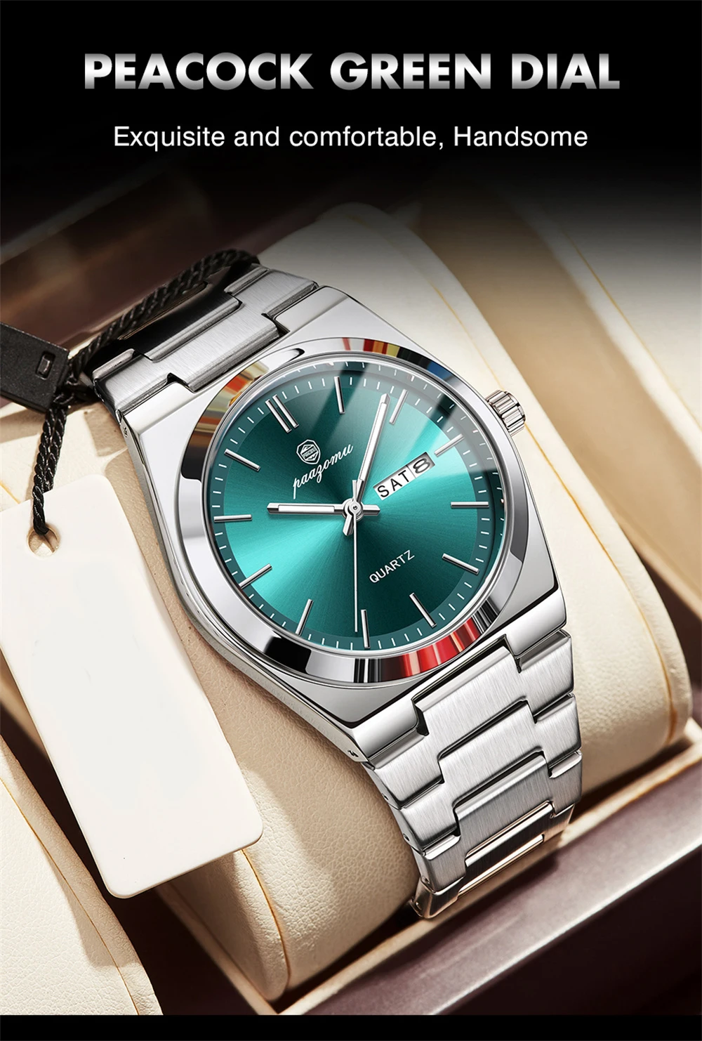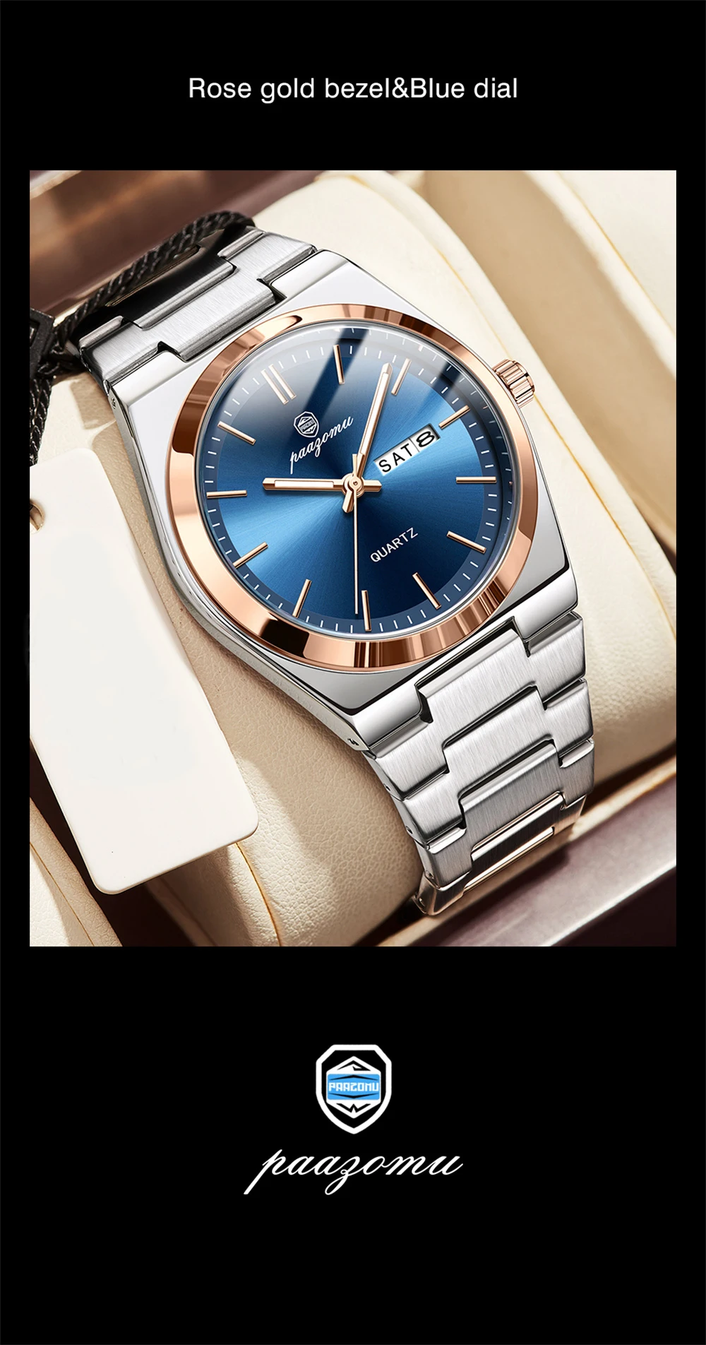 PAAZOMU Luxury Quartz Man Wristwatch Sport Men Watches Waterproof Luminous Date Week Stainless Steel Men's Watch Male Reloj+box