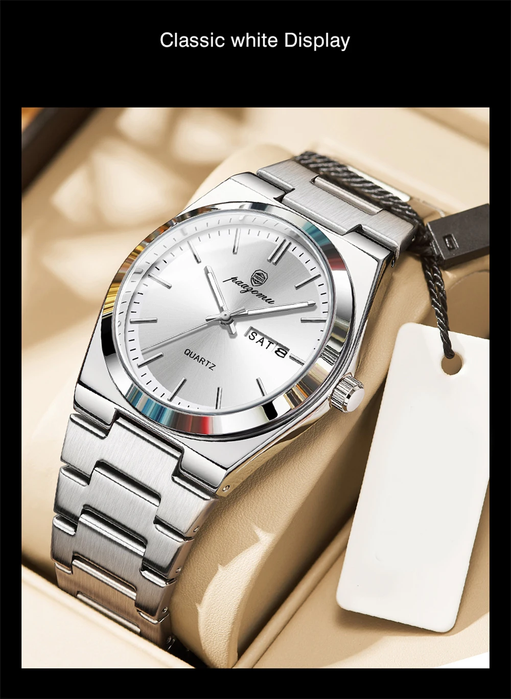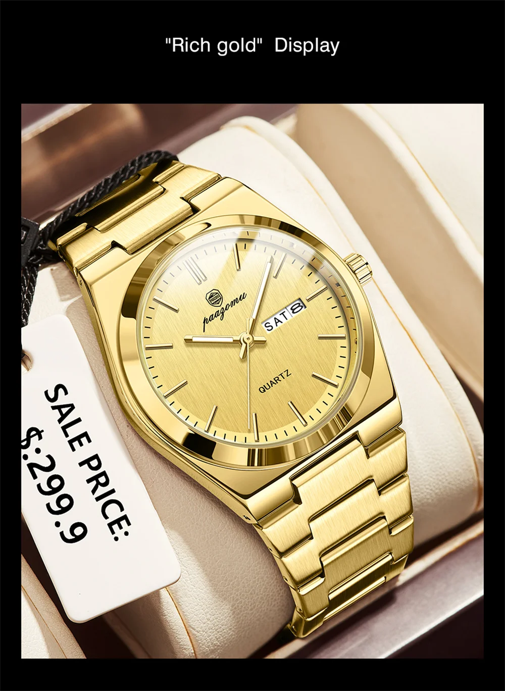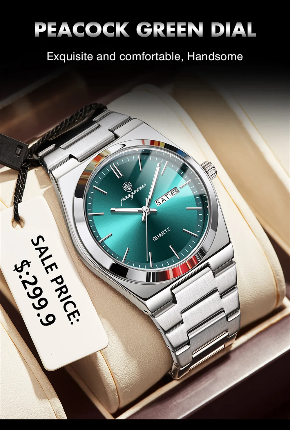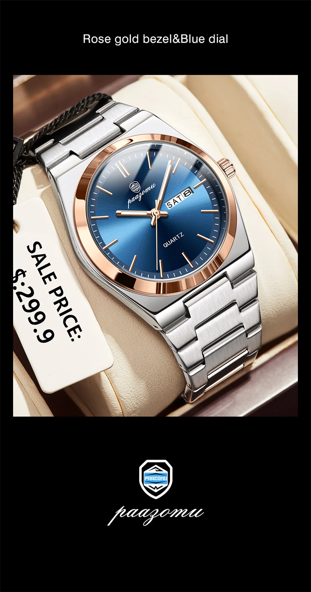 PAAZOMU Luxury Quartz Man Wristwatch Sport Men Watches Waterproof Luminous Date Week Stainless Steel Men's Watch Male Reloj+box