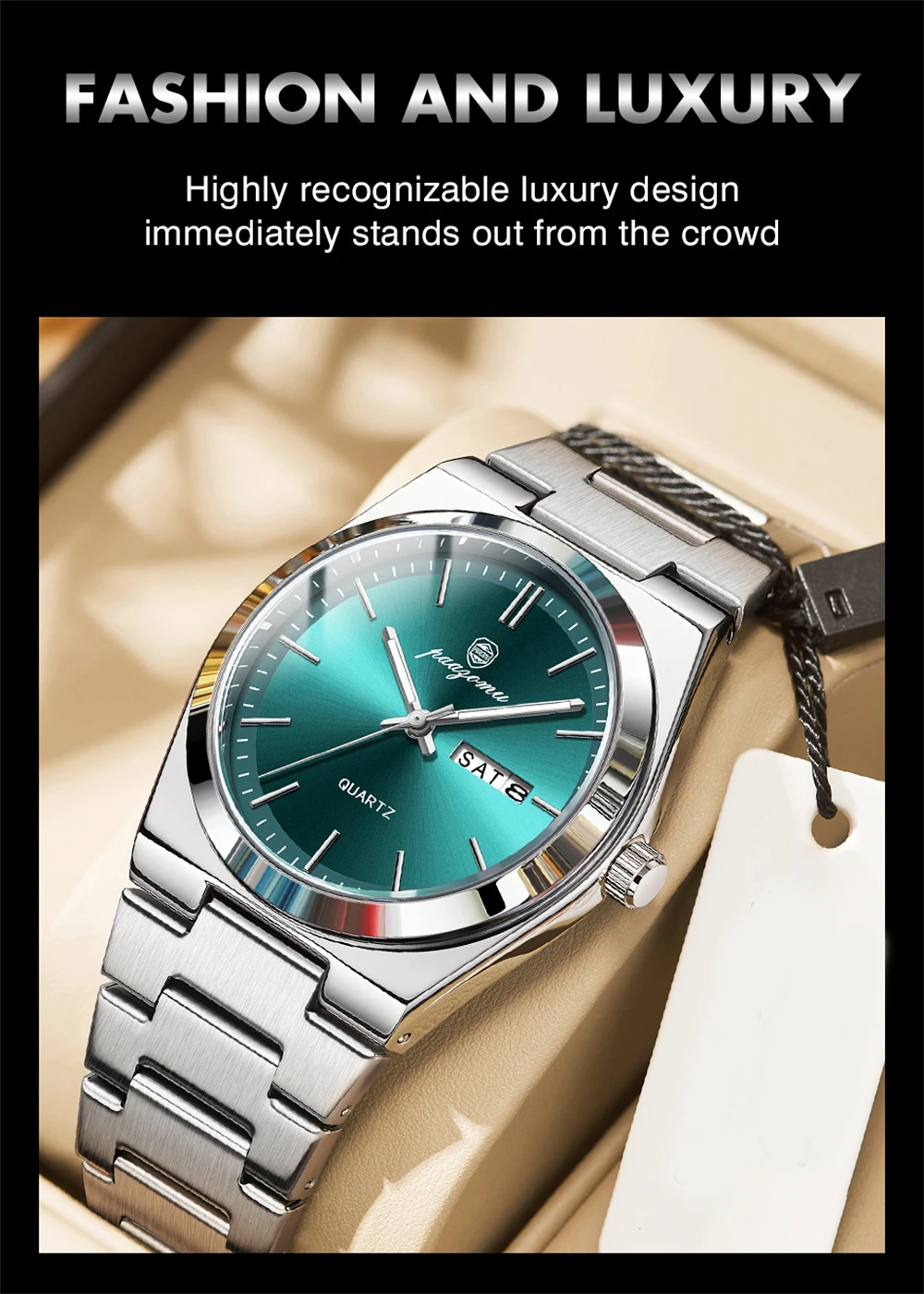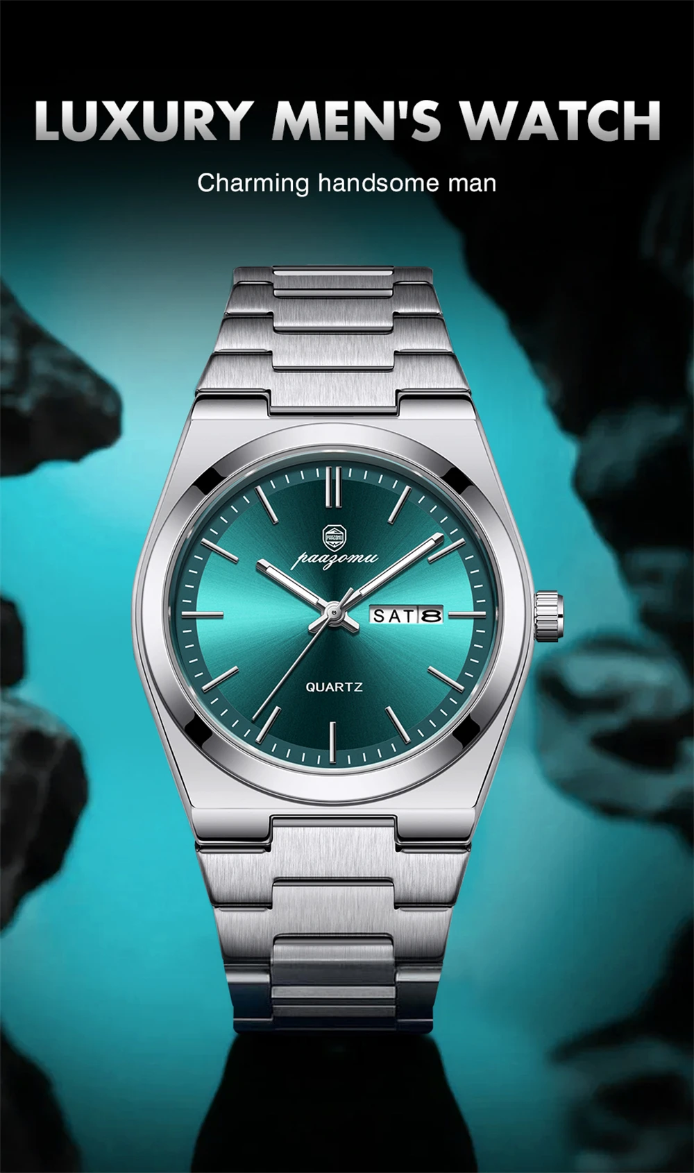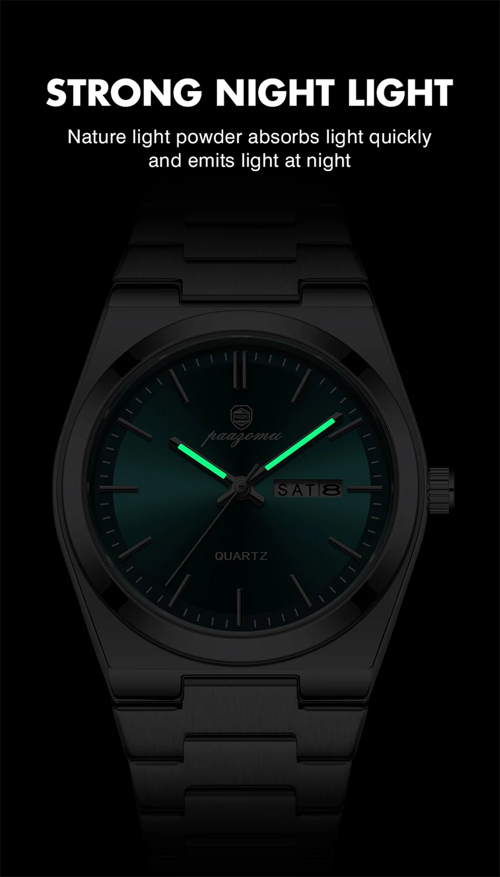 PAAZOMU Luxury Quartz Man Wristwatch Sport Men Watches Waterproof Luminous Date Week Stainless Steel