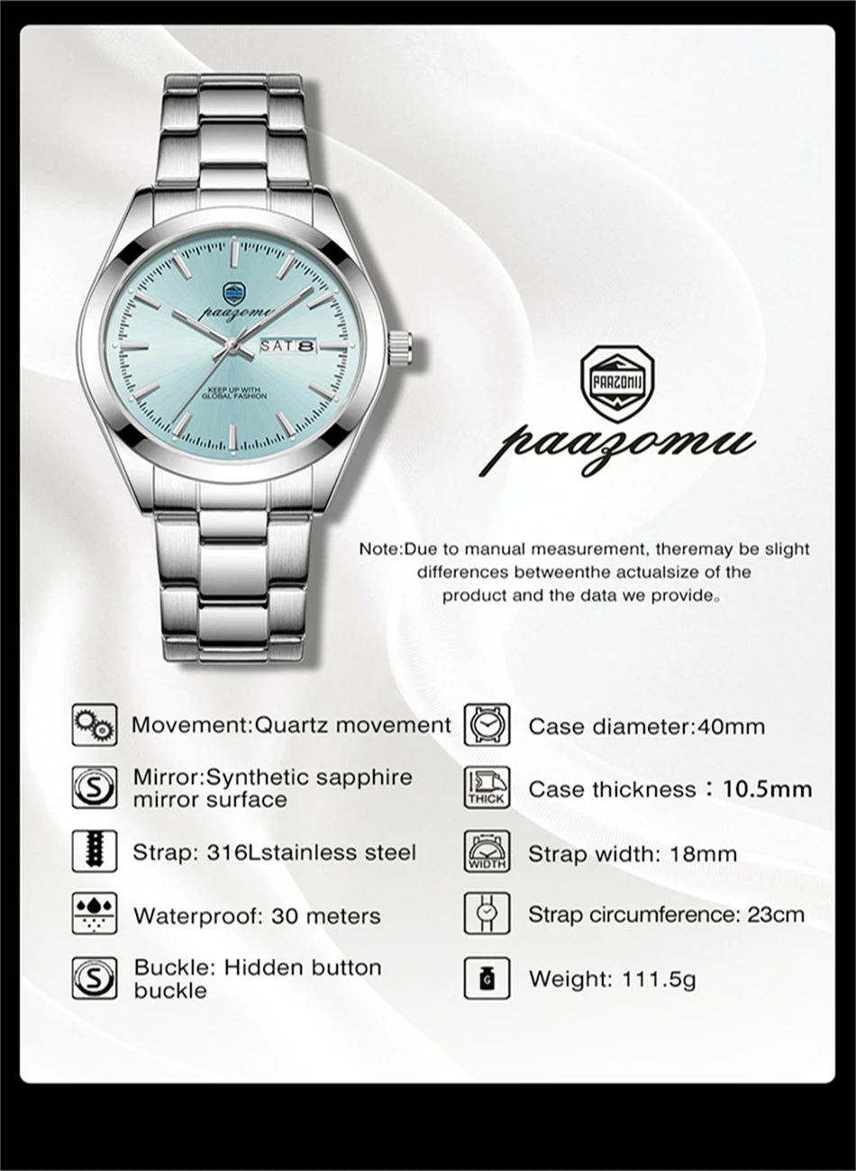 Be the first to review “PAAZOMU Luxury Sport Quartz Man Wristwatch Waterproof Luminous Date Week Men Watches Stainless Steel”