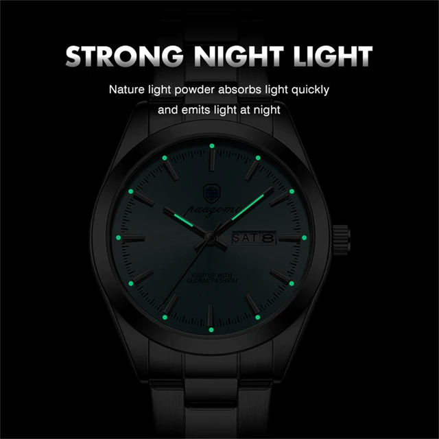 PAAZOMU Luxury Sport Quartz Man Wristwatch Waterproof Luminous Date Week Men Watches Stainless Steel