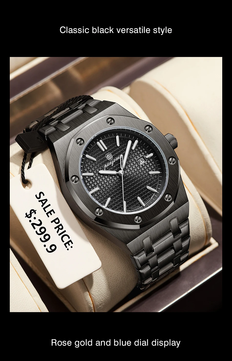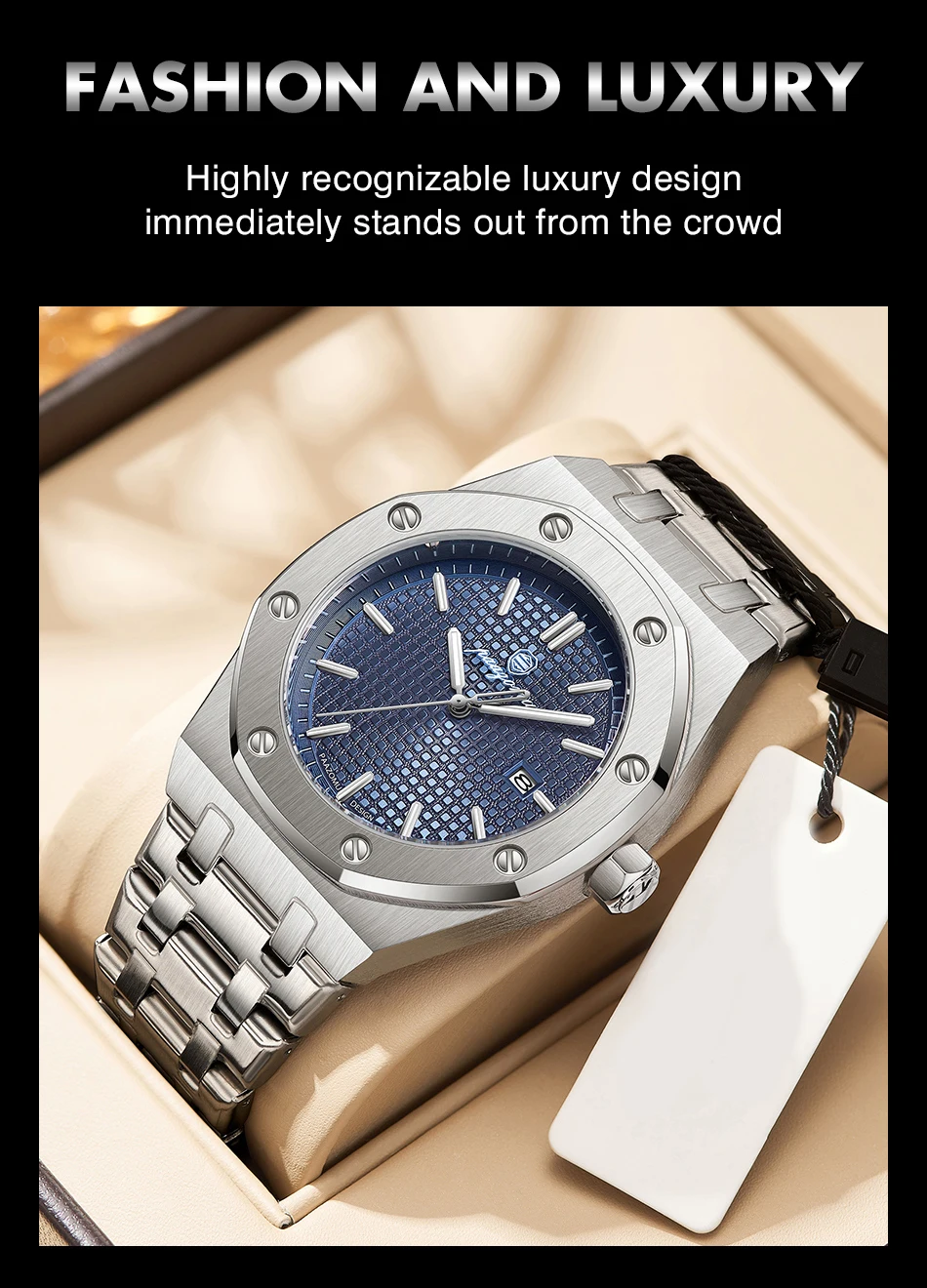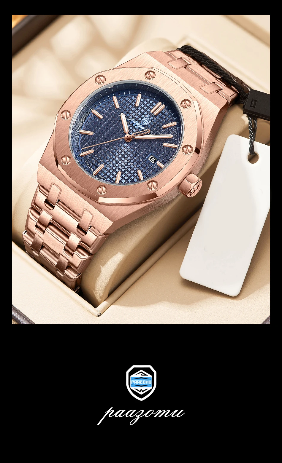 PAAZOMU Luxury Square Man Quartz Watch Waterproof Luminous Date Men’s Watch High Quality Stainless