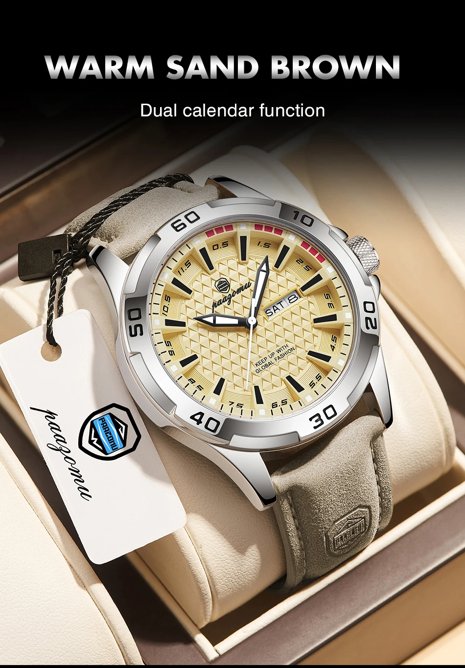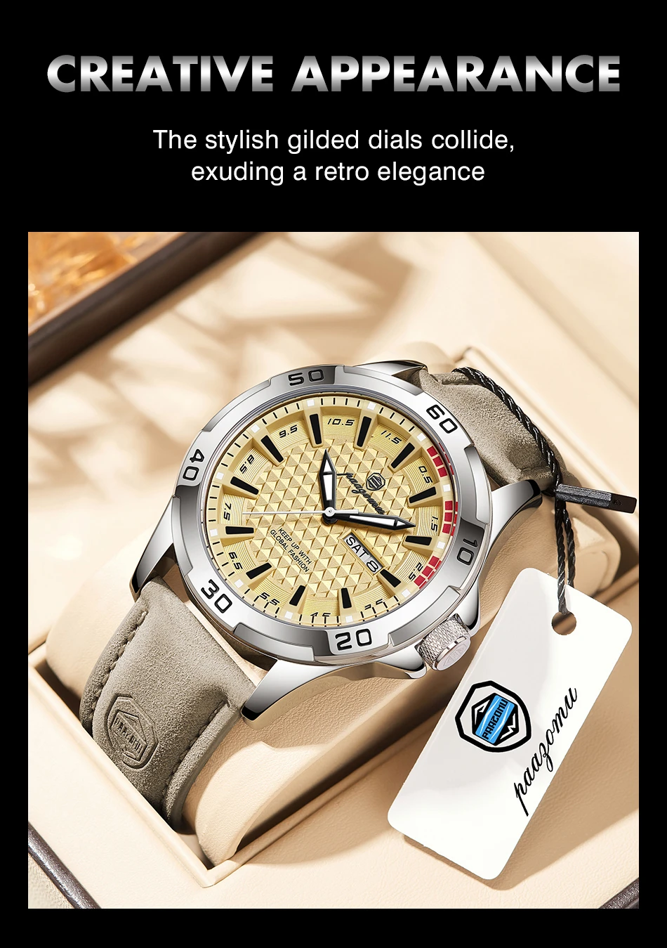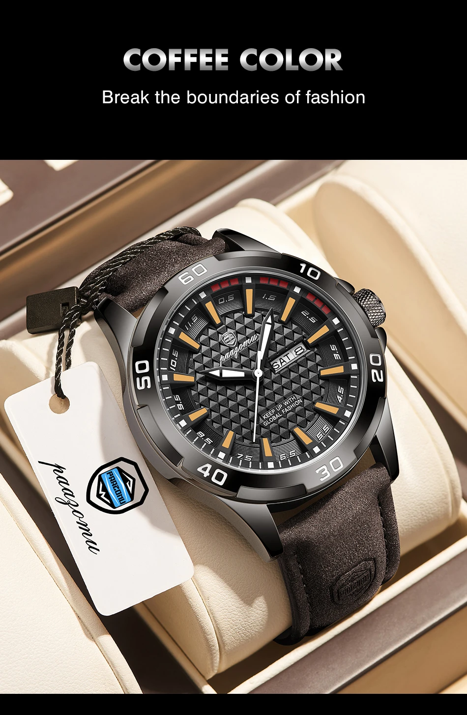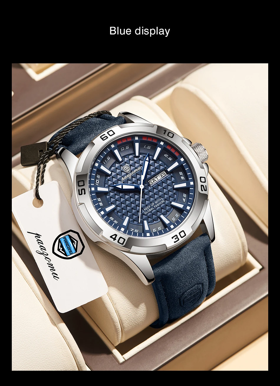 PAAZOMU Original Man Wristwatch Top Luxury Waterproof Luminous Date Week Watch For Men Quartz Sport Leather