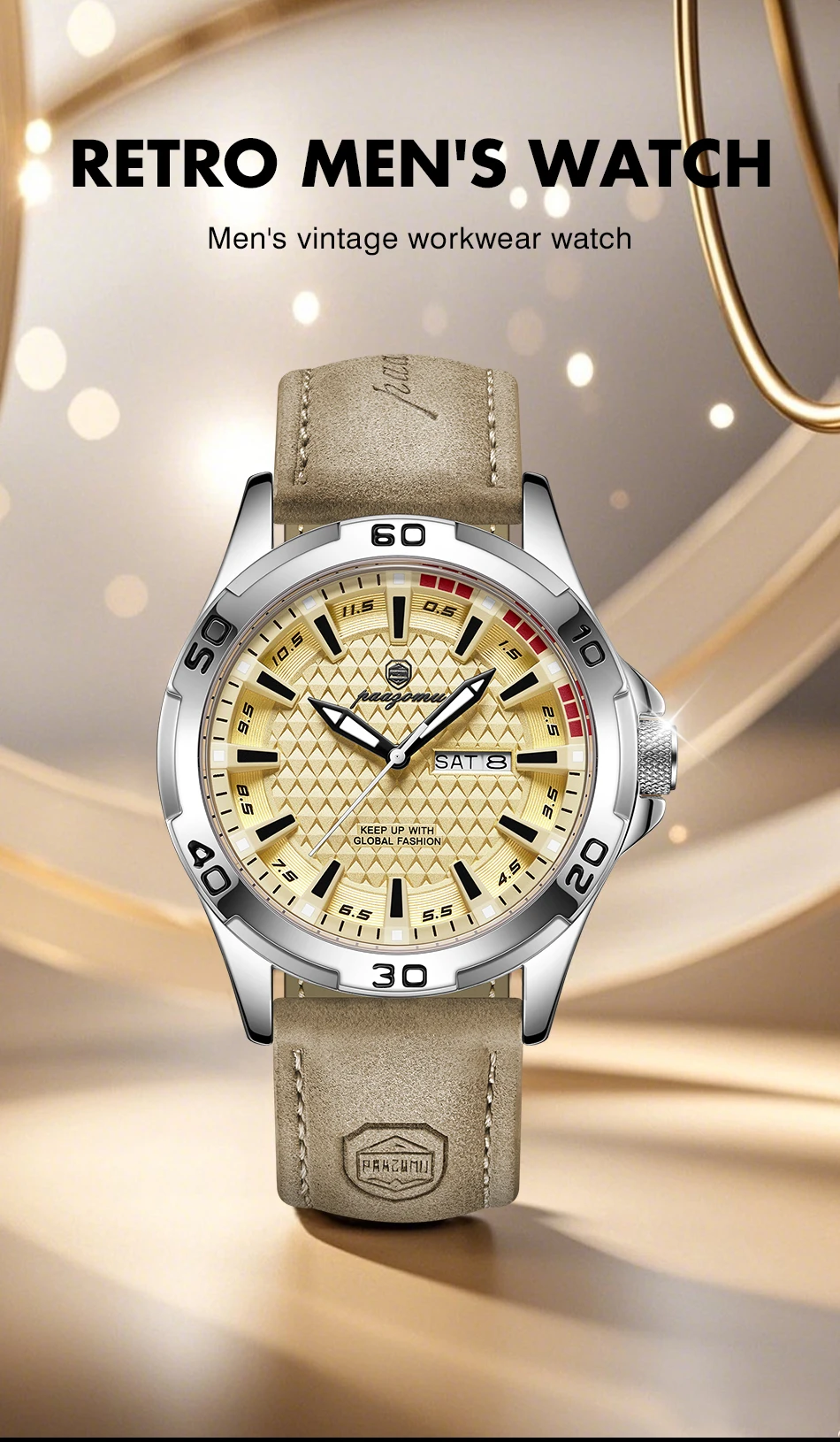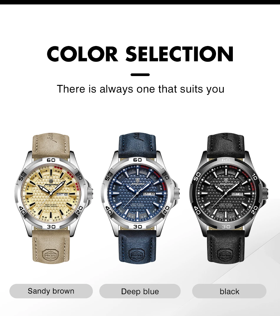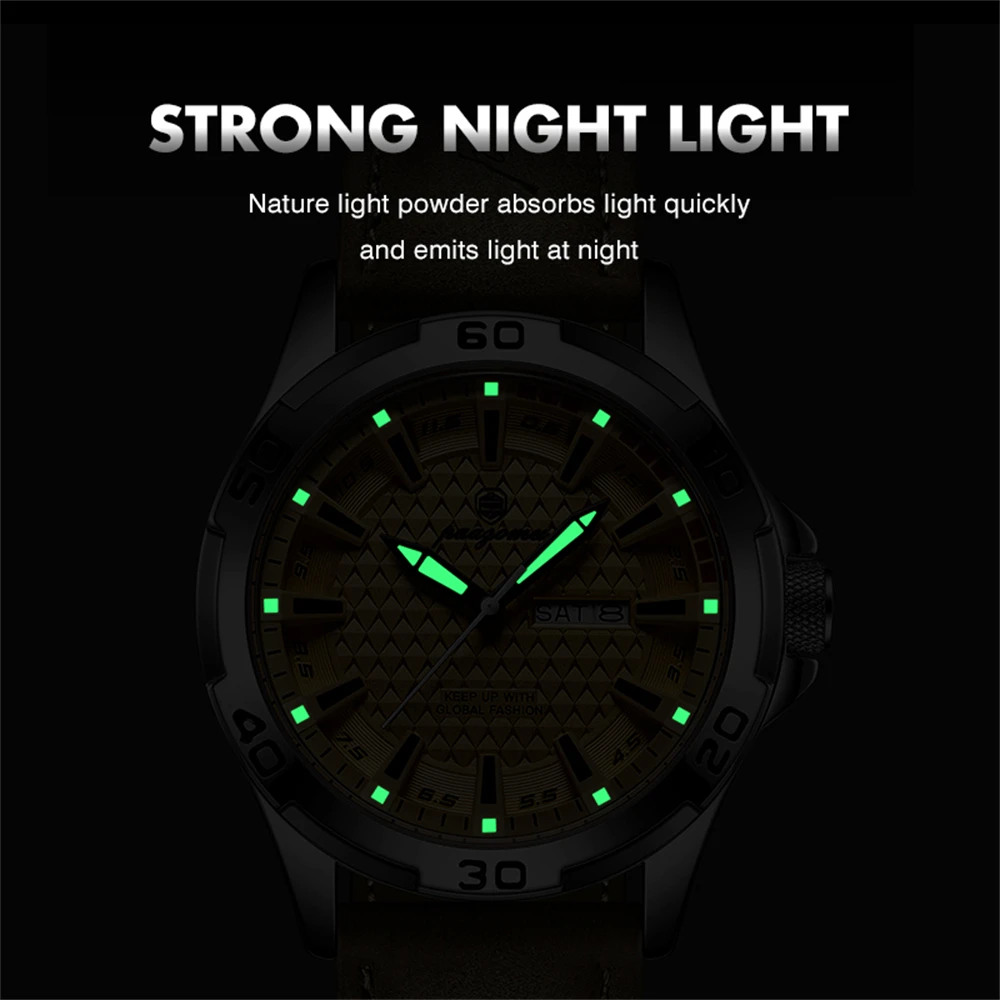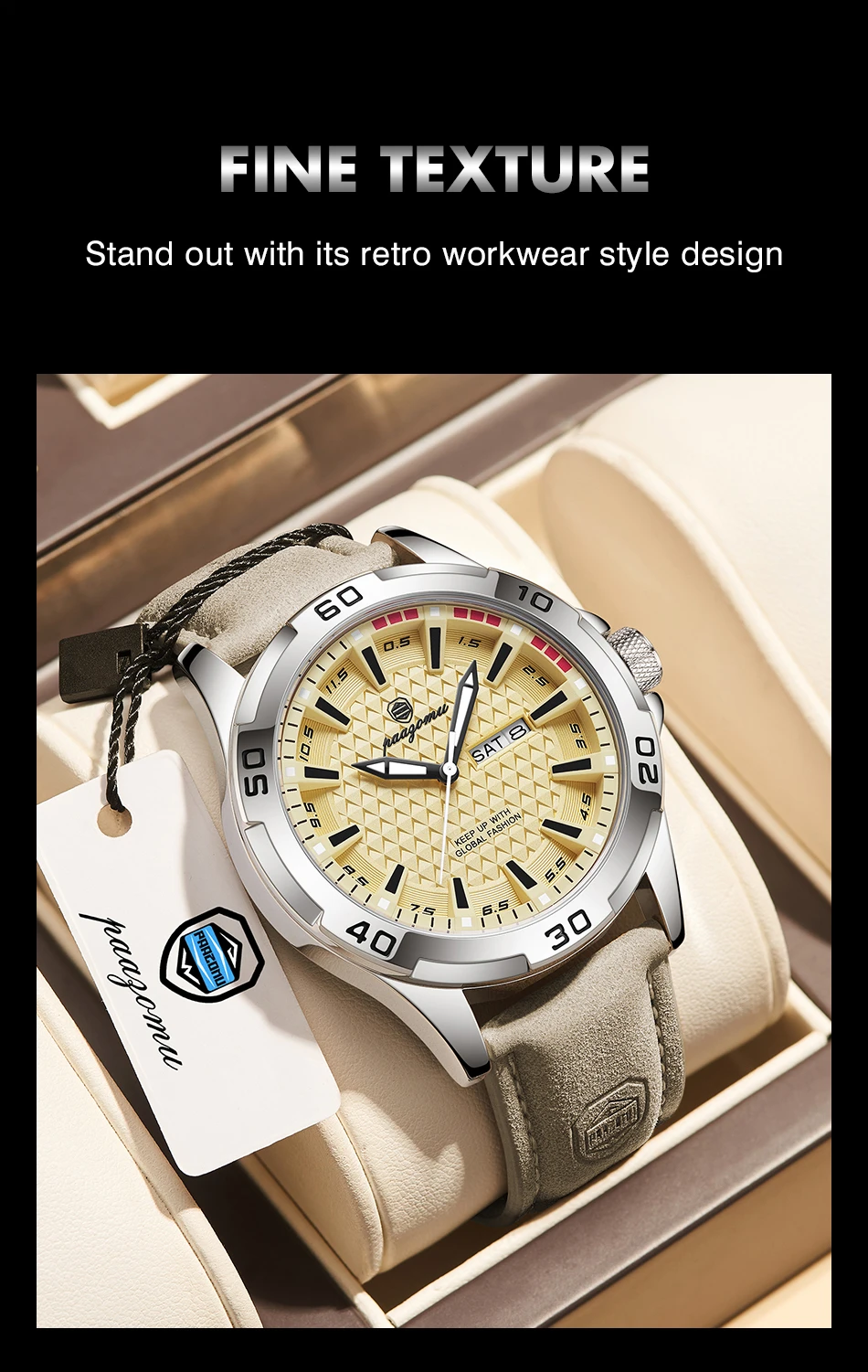 PAAZOMU Original Man Wristwatch Top Luxury Waterproof Luminous Date Week Watch For Men Quartz Sport Leather
