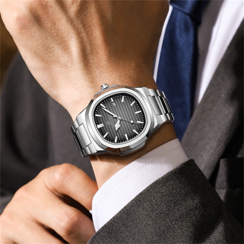 PAAZOMU Square Luxury Men Wristwatch Waterproof Luminous Date Stainless Steel Male Clock Business Sports
