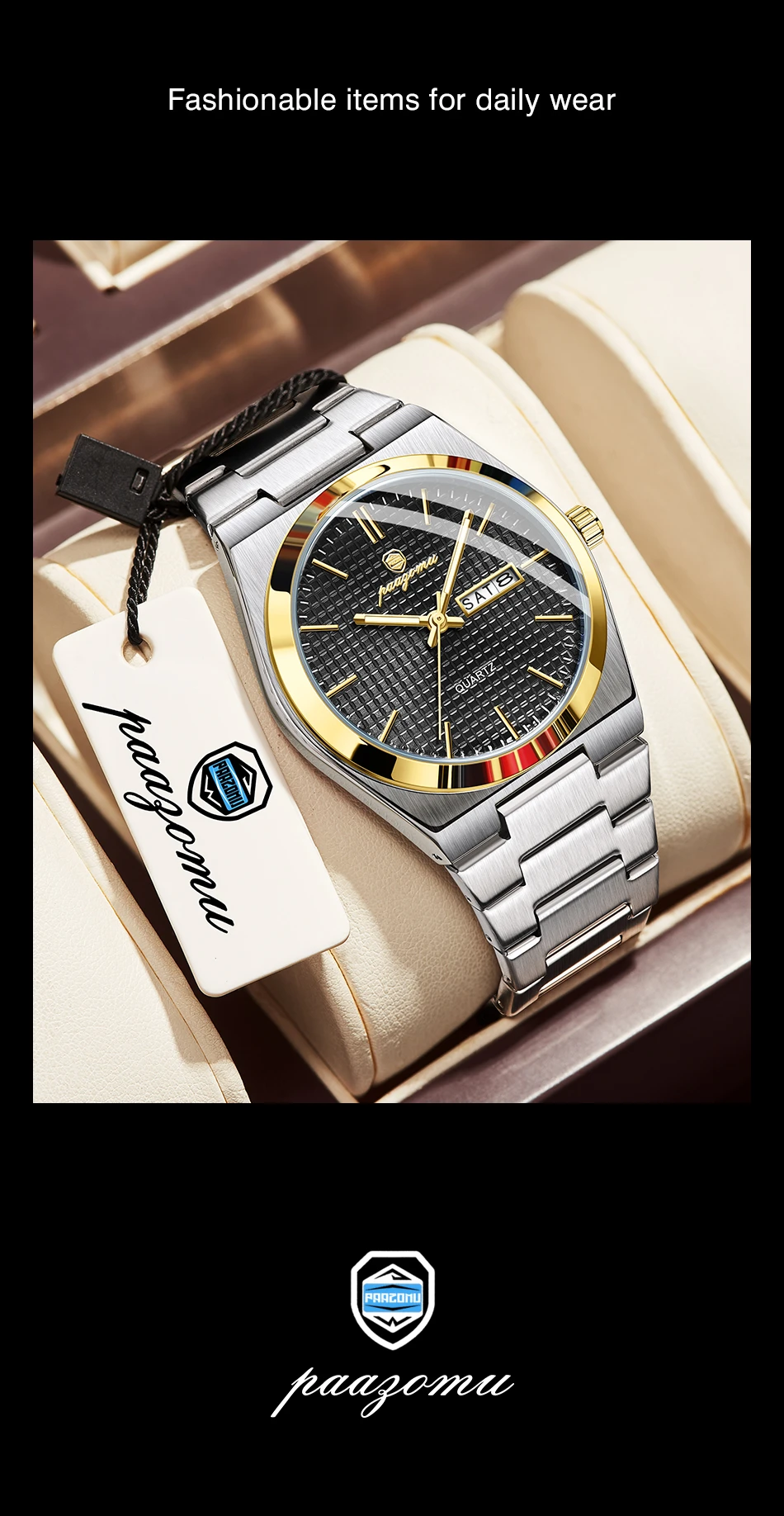 PAAZOMU Top Business Man Watch Luminous Waterproof Stainless Steel Men Wristwatch Date Week Quartz Fashion