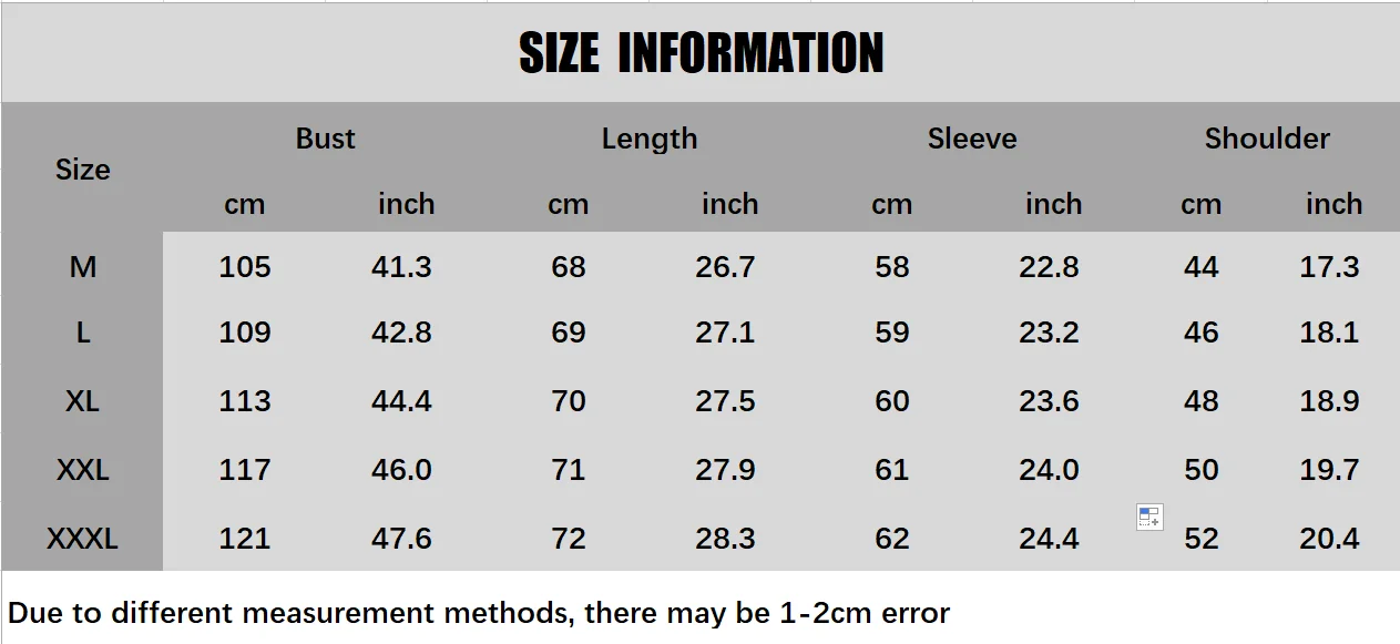 | size_info | {"sizeInfoList":[{"length":{"cm":"52","inch":"20.47"},"size":"XXXL","vid":4183},{"length":{"cm":"50","inch":"19.69"},"size":"XXL","vid":4182},{"length":{"cm":"46","inch":"18.11"},"size":"L","vid":361385},{"length":{"cm":"48","inch":"18.90"},"size":"XL","vid":100014065},{"length":{"cm":"44","inch":"17.32"},"size":"M","vid":361386}]} |