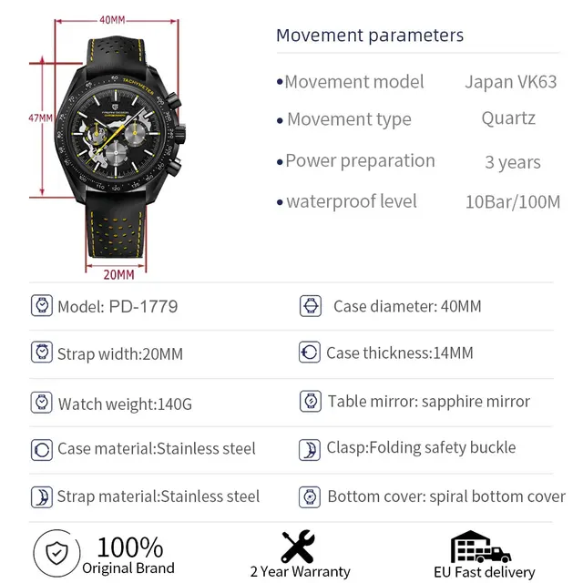 • What you get: you will receive a Pagani design watch, a Pagani design exquisite packaging box, a Pagani design watch manual (English language not guaranteed), a Pagani design watch cloth. You can also enjoy our best quality service, 30 days no reason to return, the watch is guaranteed for 2 years.
