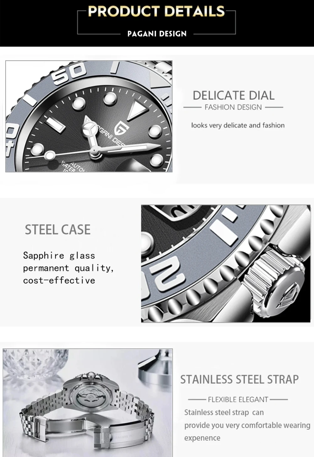 PAGANI DESIGN Tourbillon Men's Watches Gold Luxury Automatic Watch For Men Mechanical Wristwatch AR Sapphire Moon Phase Luminous