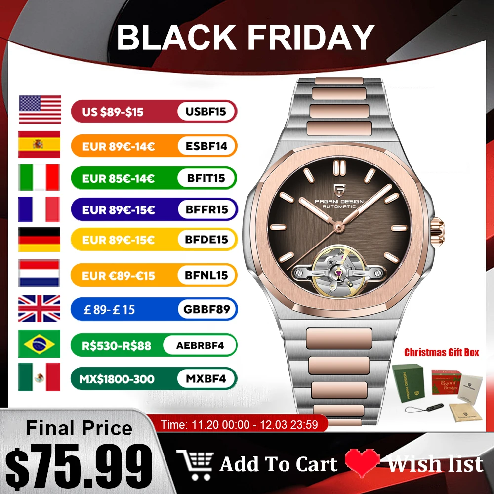 PAGANI DESIGN Tourbillon Men’s Watches Rose Gold Luxury Automatic Watch For Men Mechanical Wristwatches