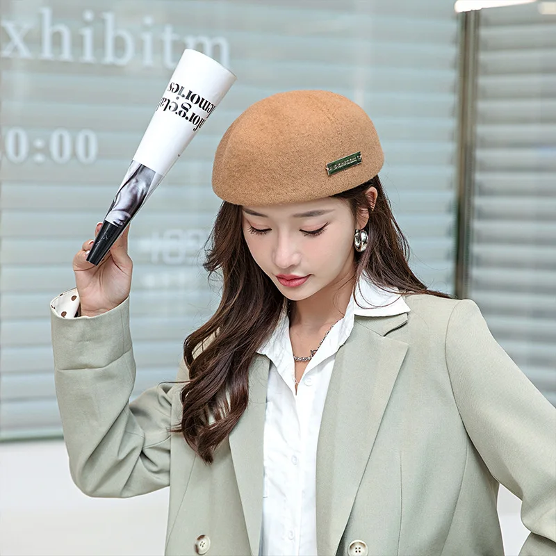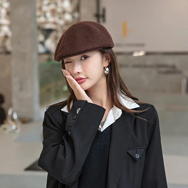 Panama Women’s Autumn and Winter Warm Wool Beret Retro Wool Painter Hat Fashion Outdoor Cap H133