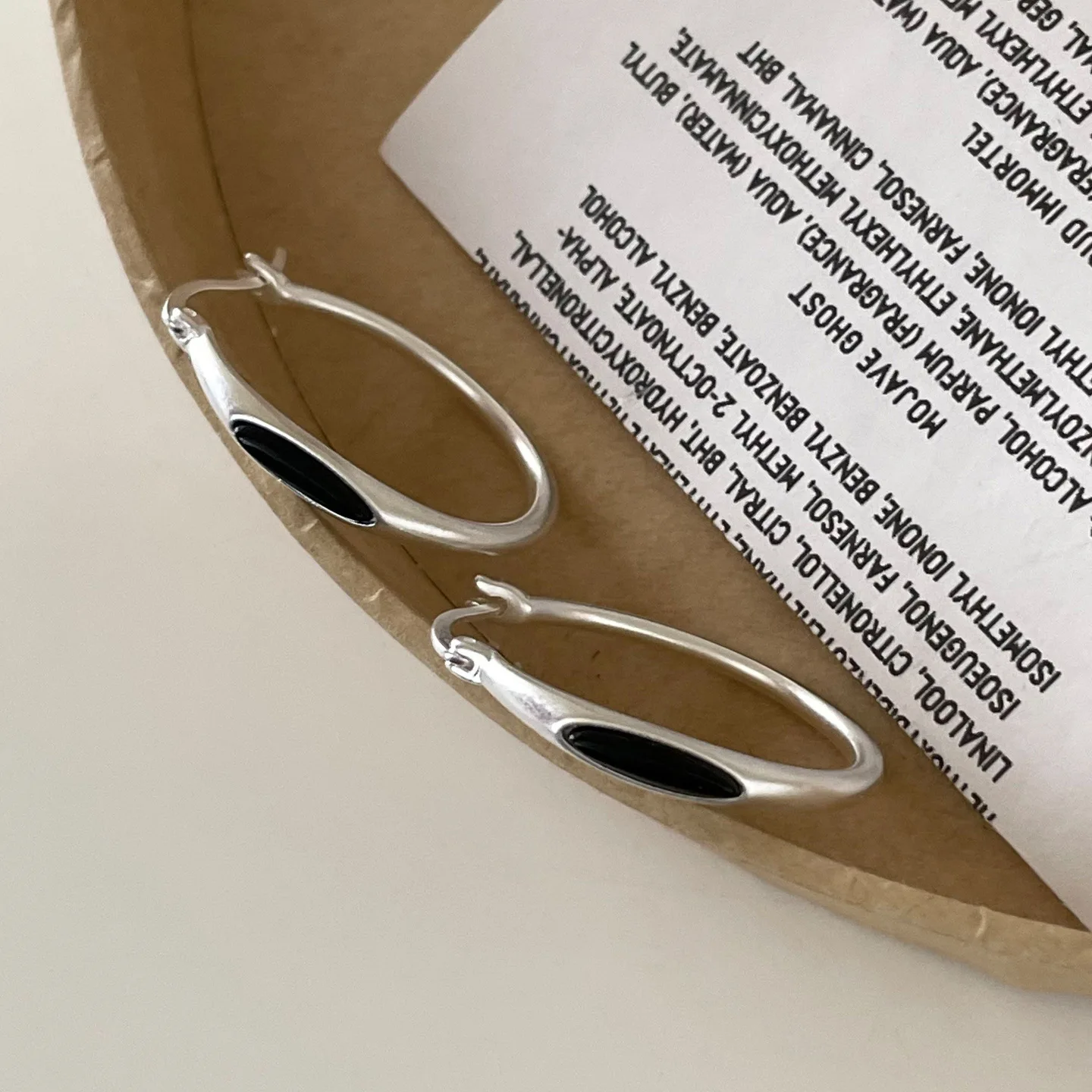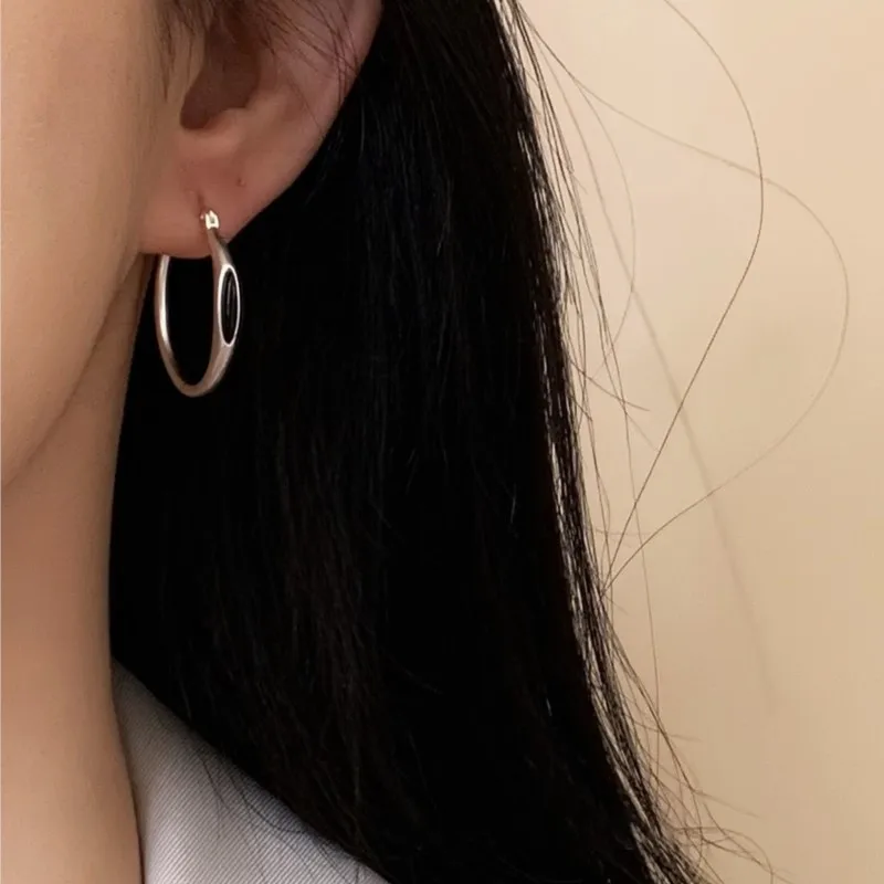 Be the first to review “PANJBJ 925 Sterling Silve Black Agate Hoop Earring for Women Geometry Line Simple Hip Hop Office Versatile”