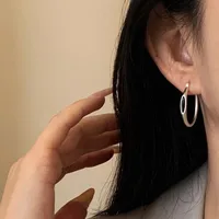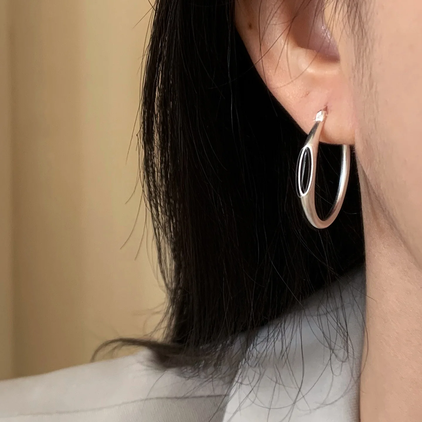 PANJBJ 925 Sterling Silve Black Agate Hoop Earring for Women Geometry Line Simple Hip Hop Office Versatile Jewelry Gift Dropship