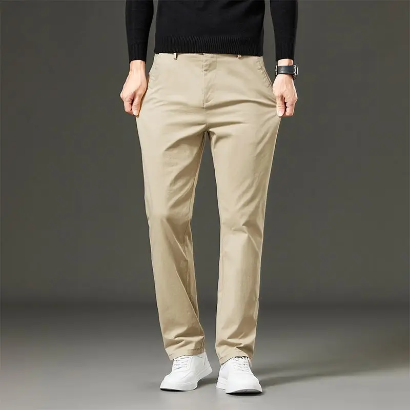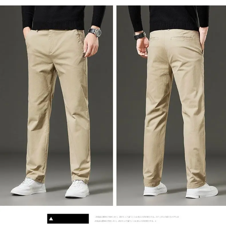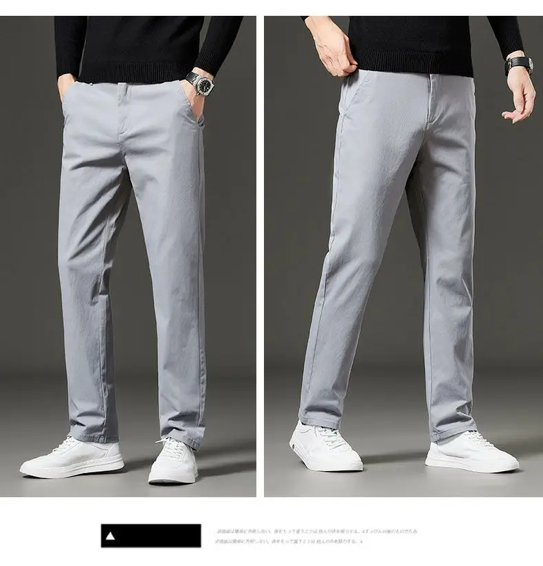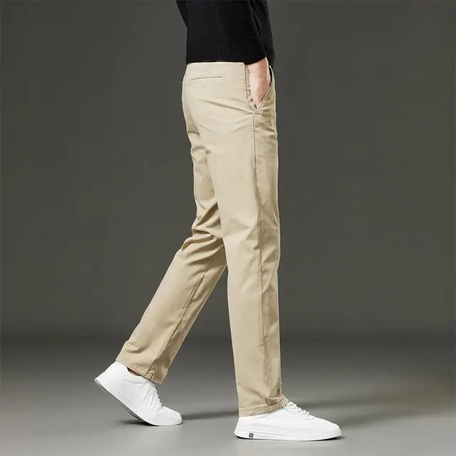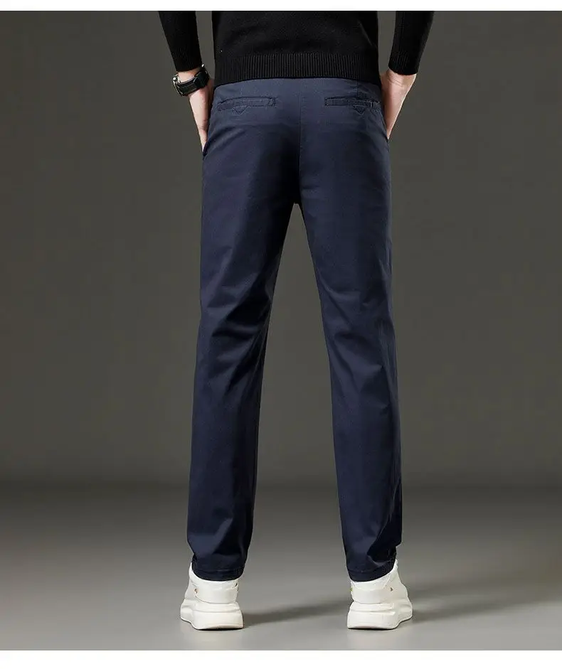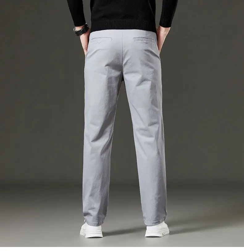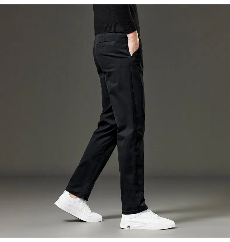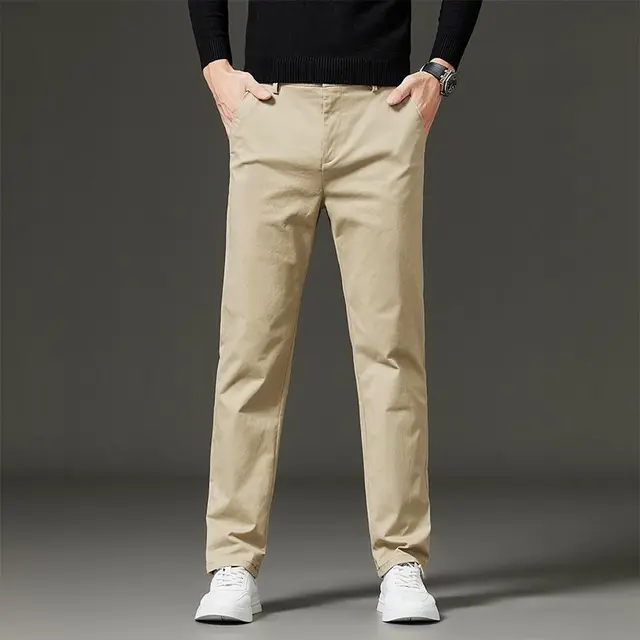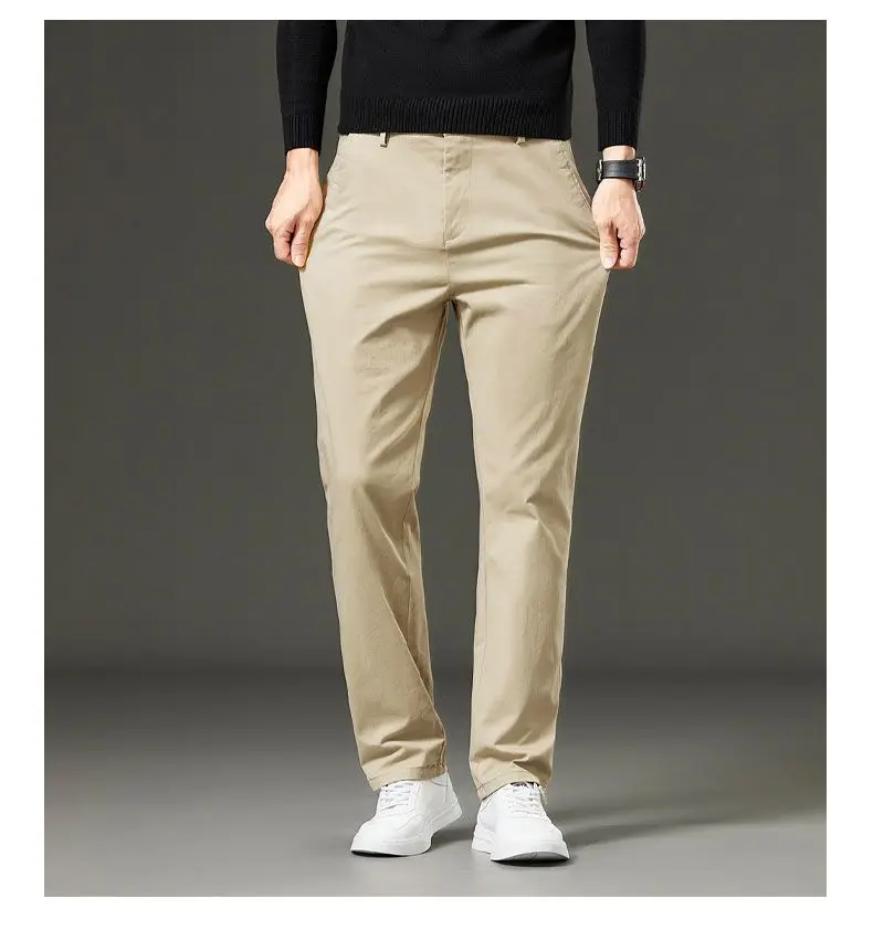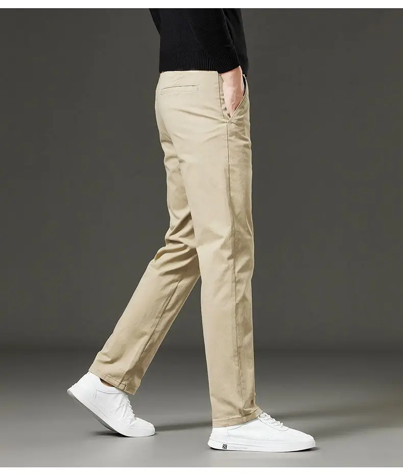 Pants Men Business Straight Cotton Trousers Stretch Elastic Slim Fit Casual Large Plus Size 42 44 Khaki