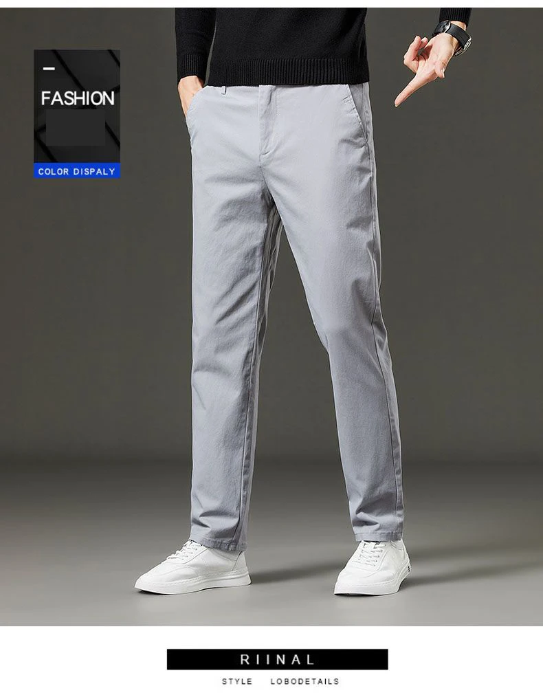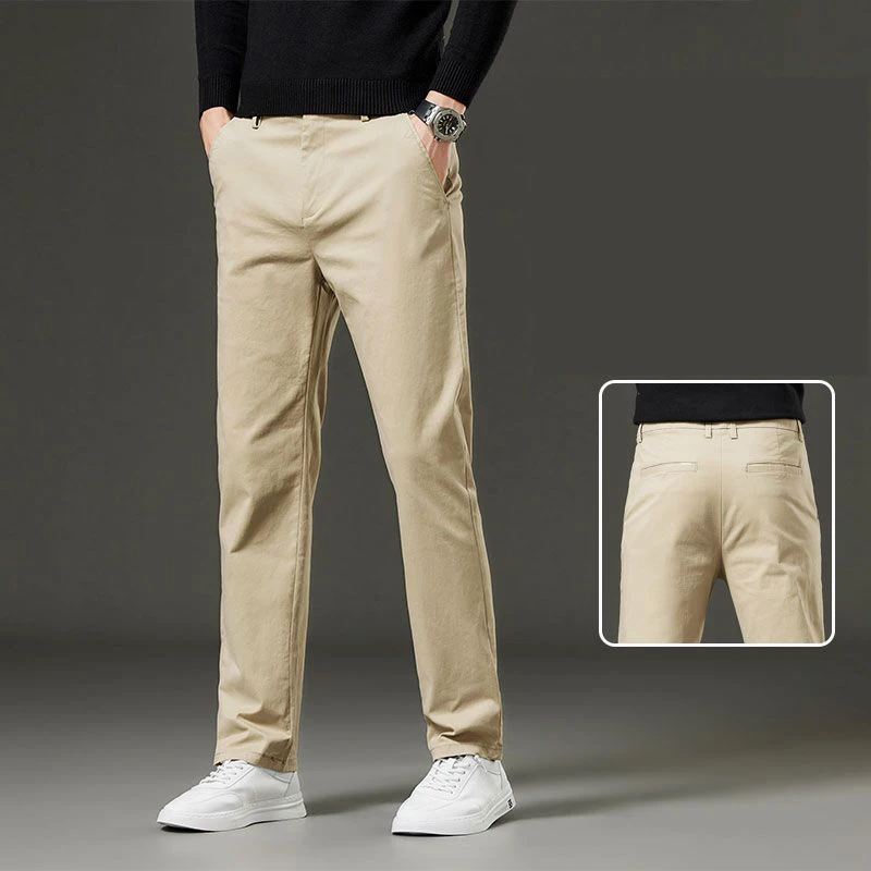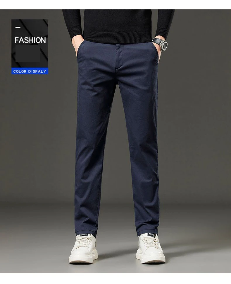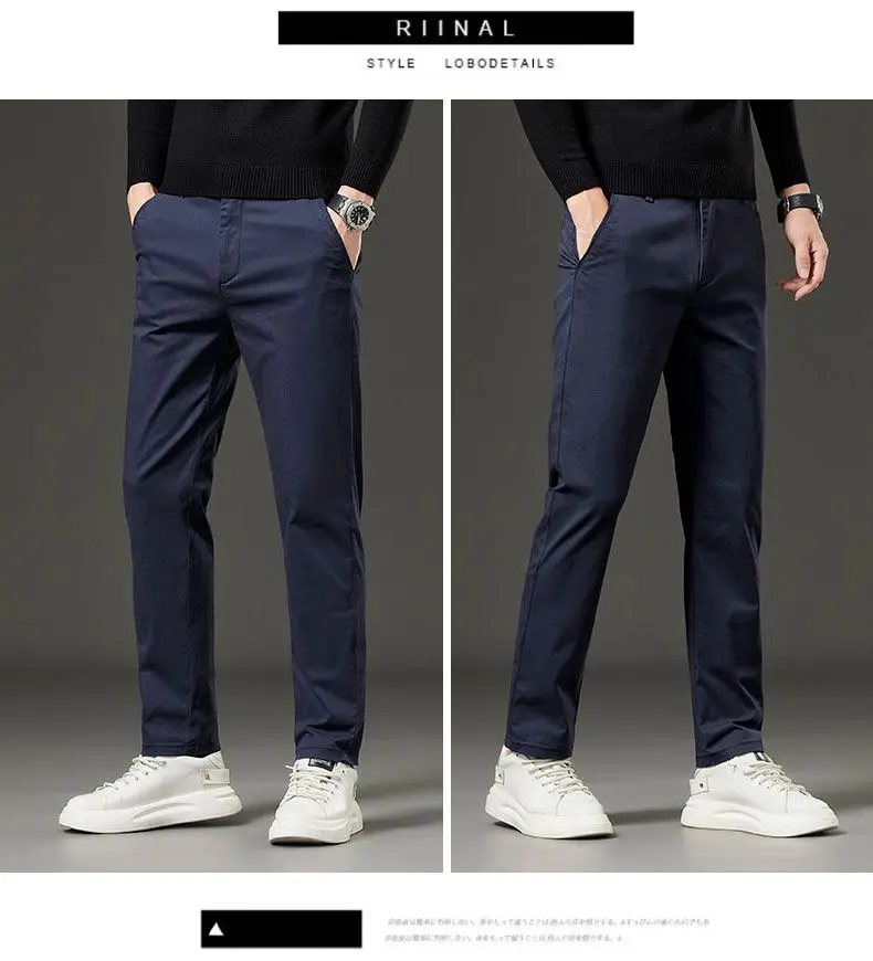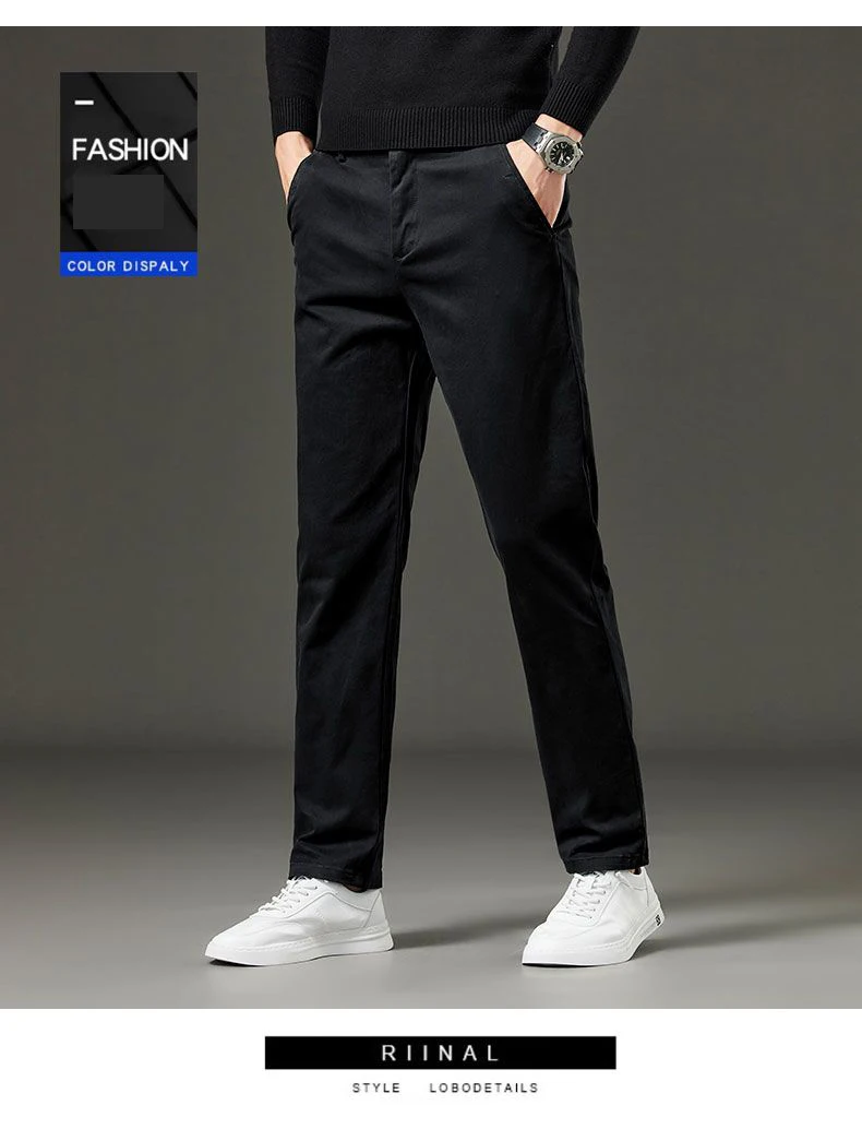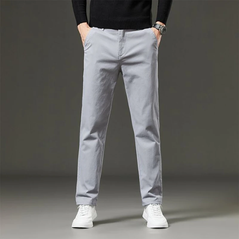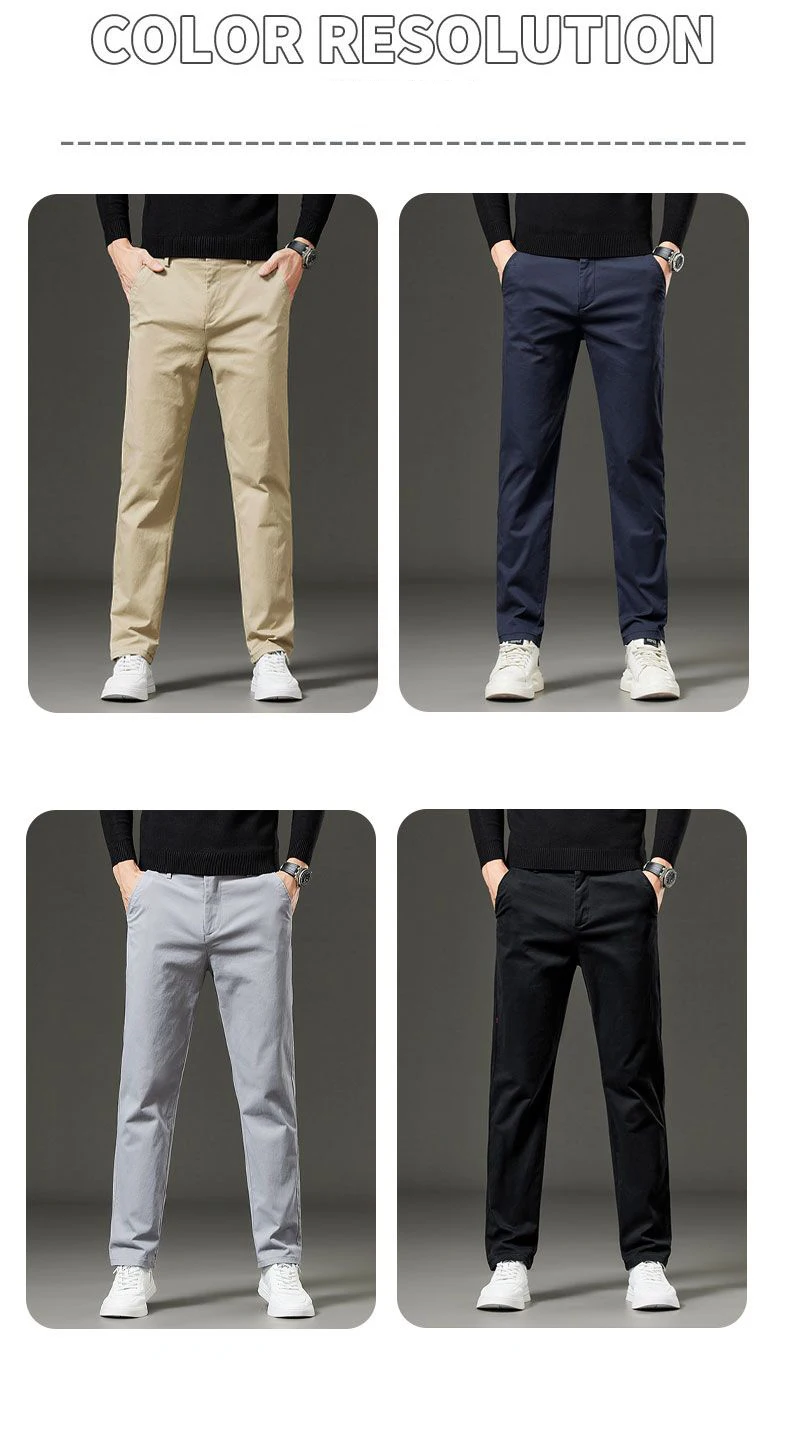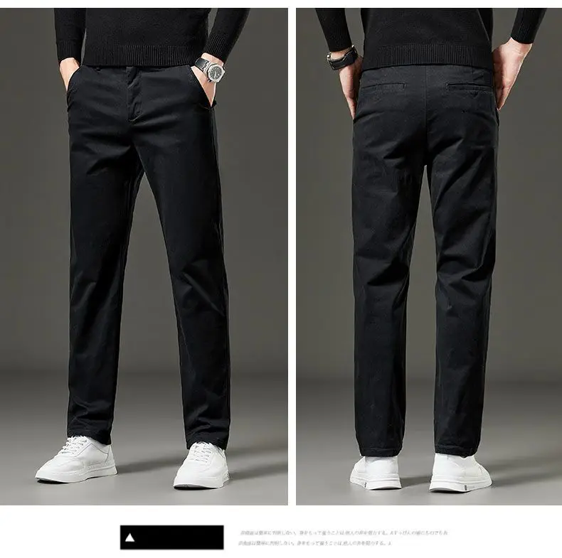 Pants Men Business Straight Cotton Trousers Stretch Elastic Slim Fit Casual Large Plus Size 42 44 Khaki