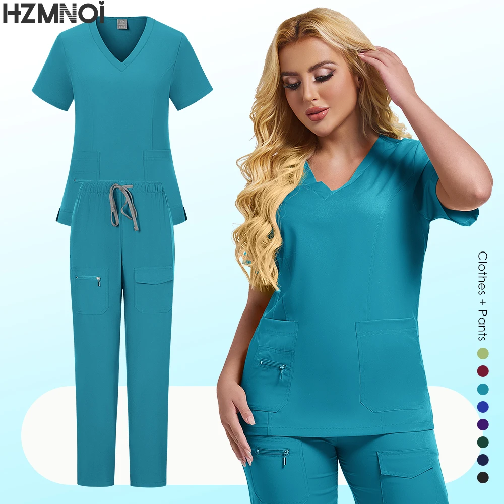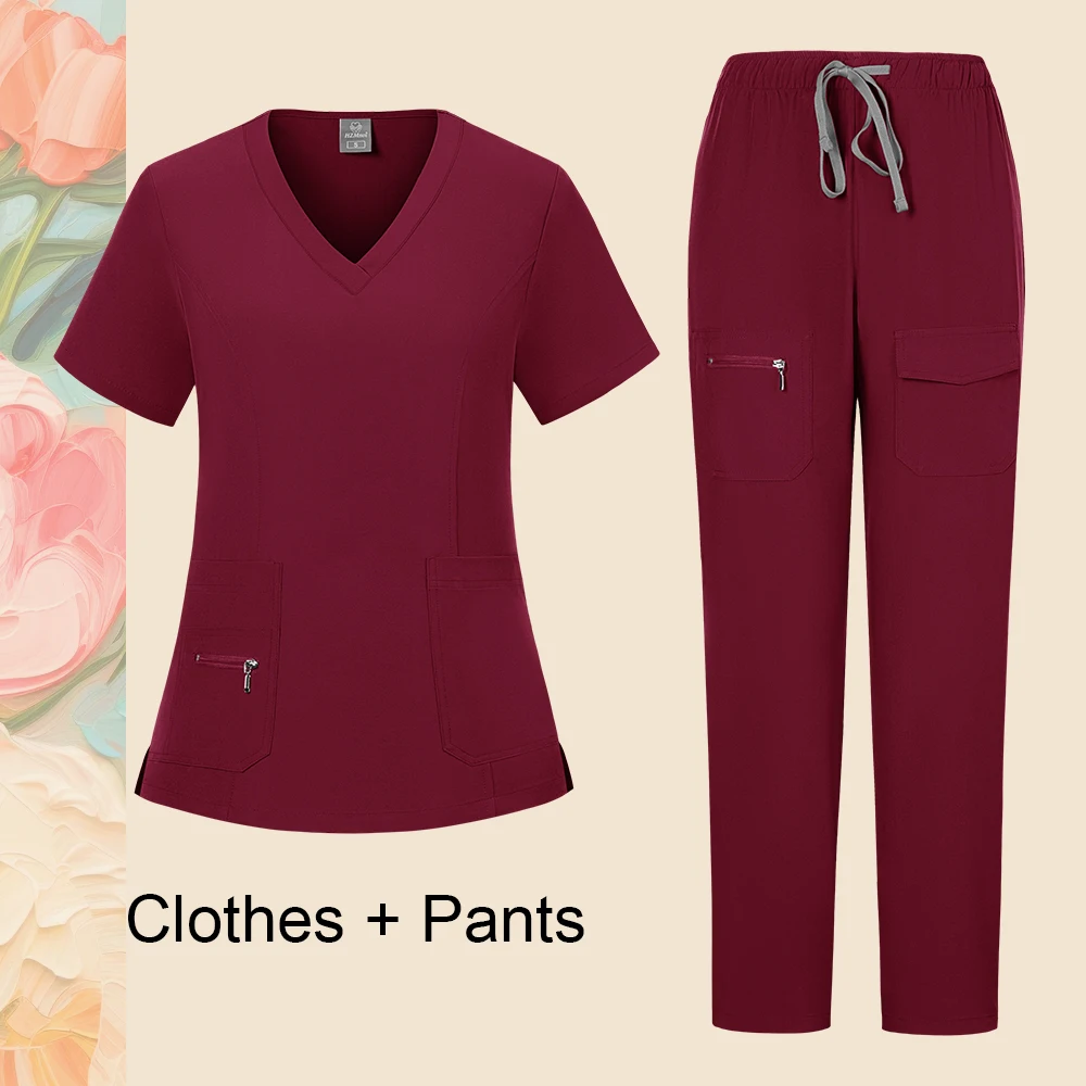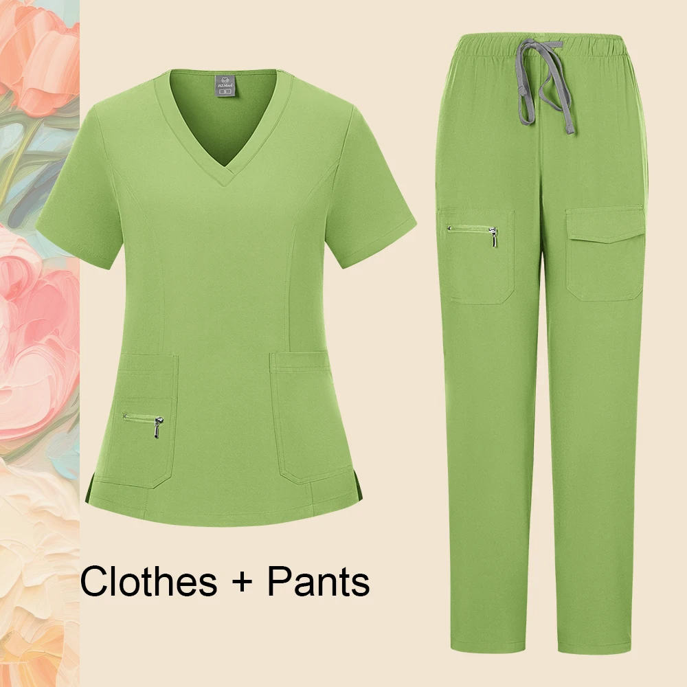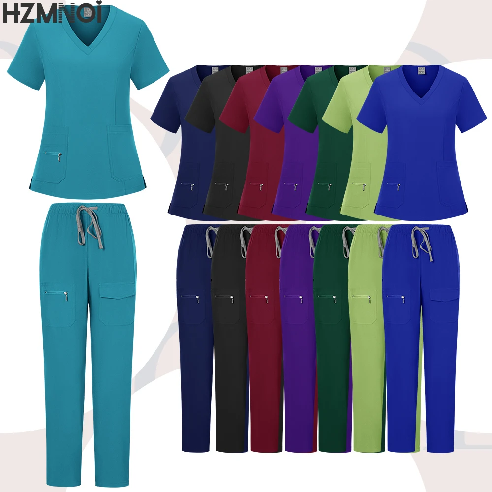 Stretchy Nurse Uniforms V-neck Top Jogger Pants Scrub Sets Surgical Workwear Dentist Nursing Suit Hospital Doctor Outfit S21