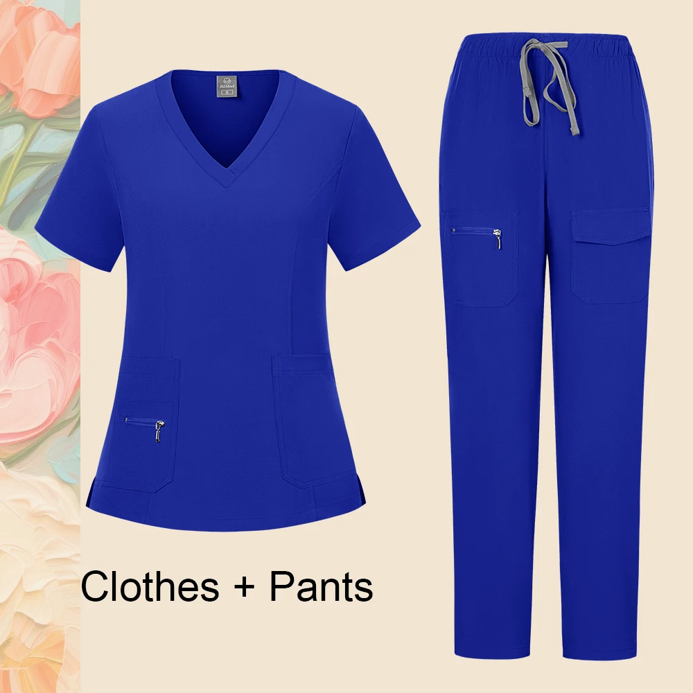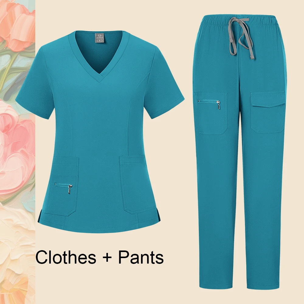 Price range: 22.40$ through 27.31$Pants Sets Short Sleeved Top Scrub Solid Color Surgical Gowns Medical Accessories Manicurist Beautician