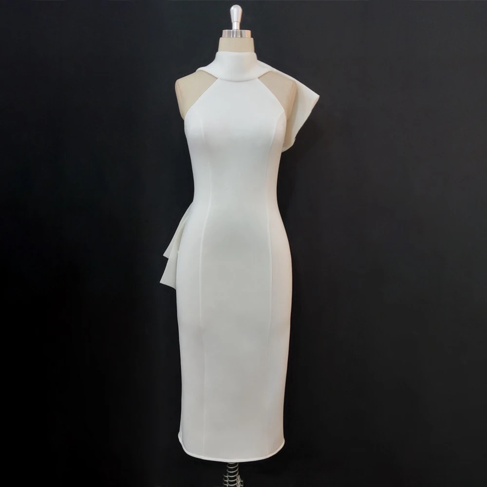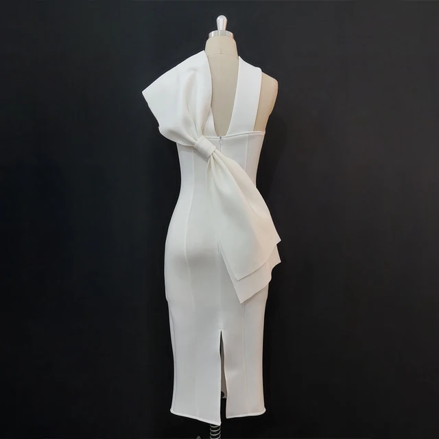 Party White Bodycon Dress Women with Back Big Bow Sexy Sleeveless Club Event Celebrate Fashion Cocktail
