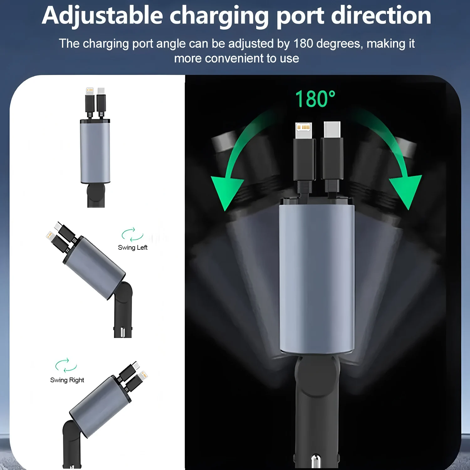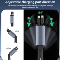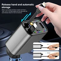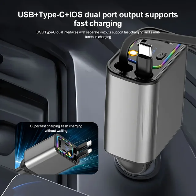 PD+USB Type C Car Fast Charger with 2 Retractable Cables Phone Charger LED Dispaly 5-in-1 Car Charger