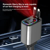 5 In 1 Retractable USB C Car Charger 180W Car Fast Charging Adapter With Atmosphere Lights For IPhone,iPad,Android