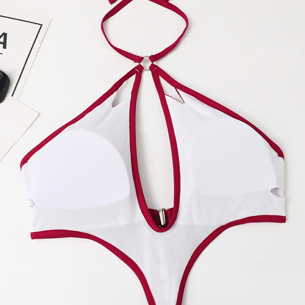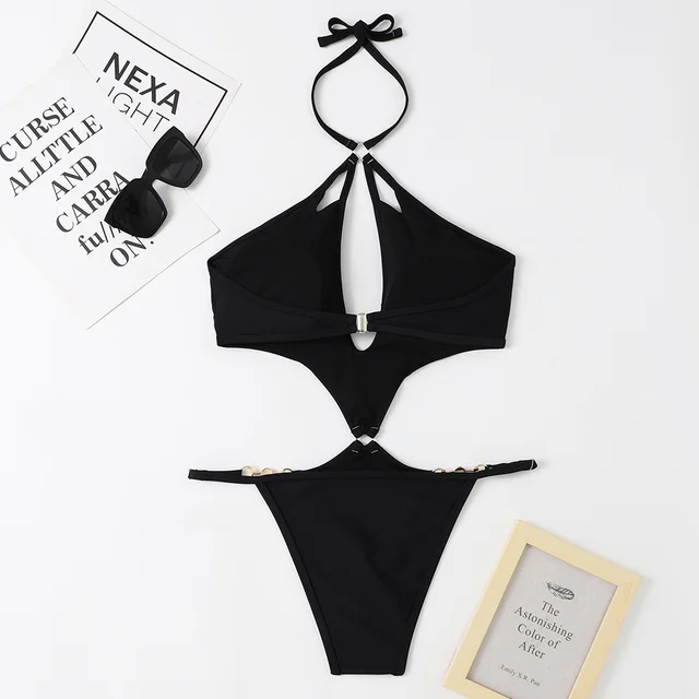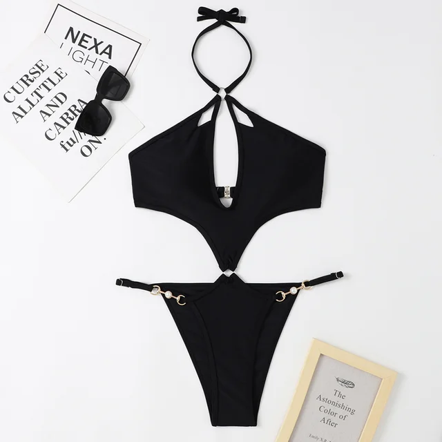 Pearl Chains Bikini String Hollow Out Monokini Backless Swimsuit Vacation Swimwear Women Beach Bathing