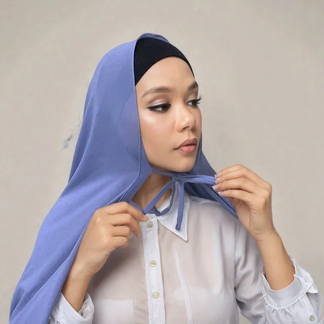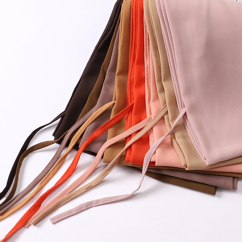 Middle East Women Fashion Lace Hijabs Bonnet Islam Women Solid Color Pre-Tied Turban Hat Long Tail Headscarf