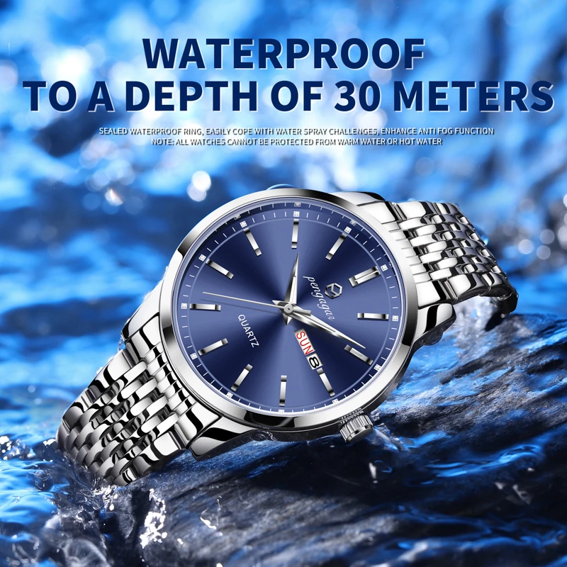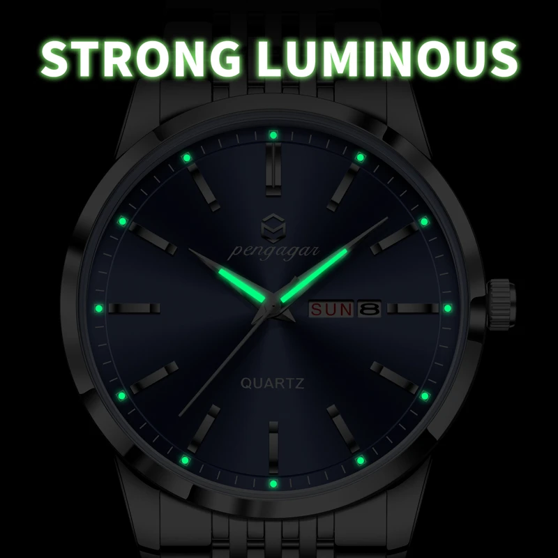 PENGAGAR Fashion Business Man Watch Waterproof Luminous Date Stainless Steel Men Quartz Watch Luxury