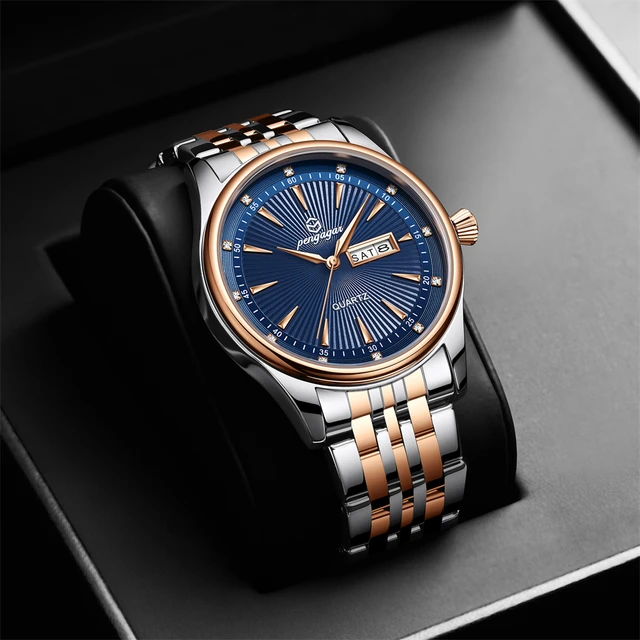 PENGAGAR Fashion Business Men’s Watches Waterproof Luminous Date&Week Stainless Steel Men Watch