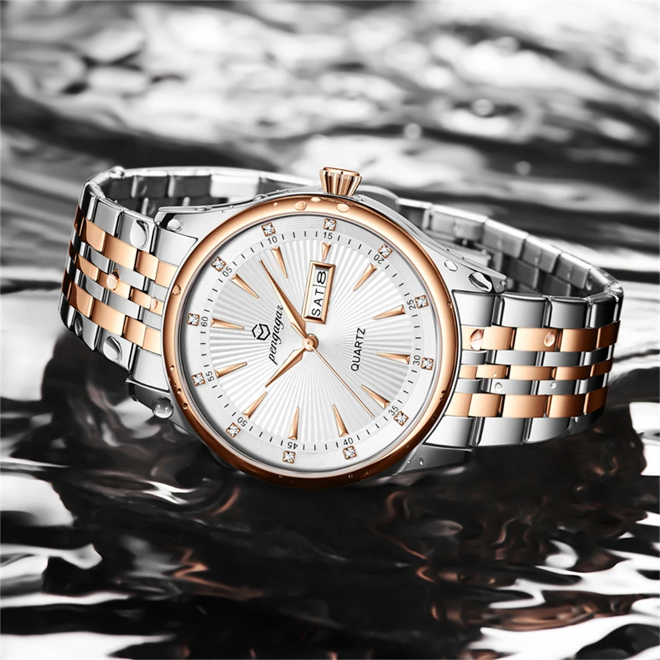 PENGAGAR Luxury Business Men Wristwatch Waterproof Luminous Date Military Man Watch Stainless Steel Fashion