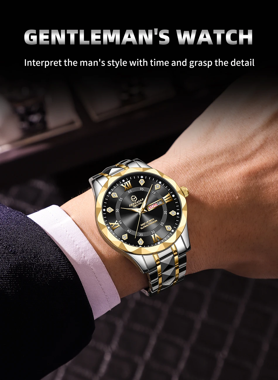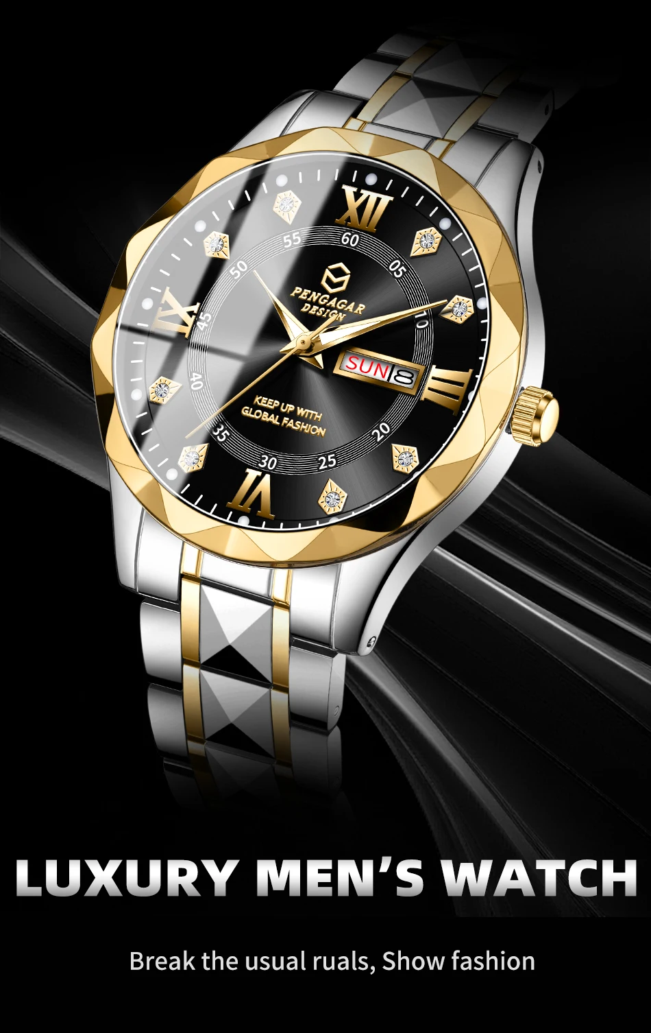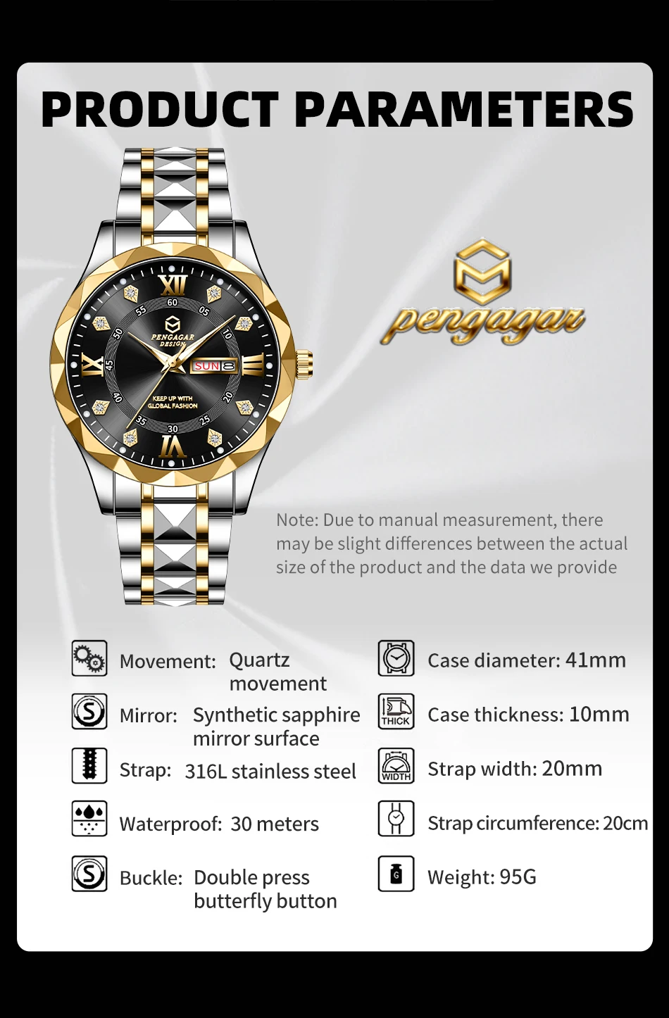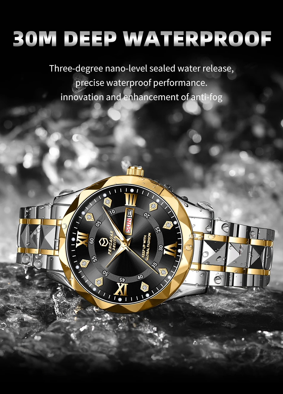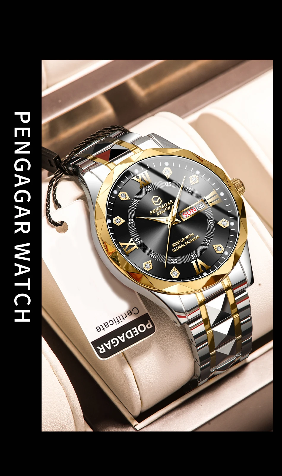 PENGAGAR Luxury Man Watch 30ATM Waterproof Chronograph Luminous Men’s Wristwatch Stainless steel