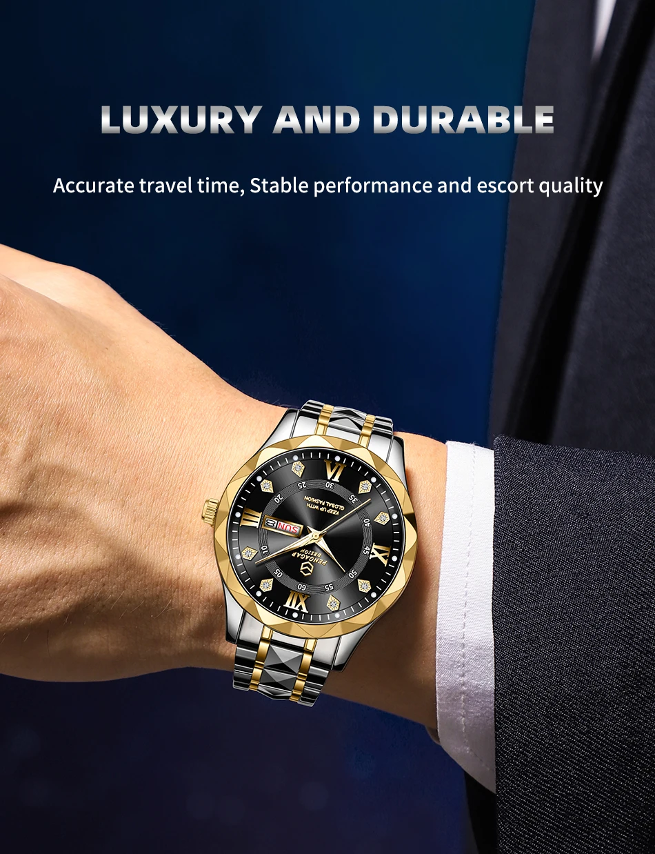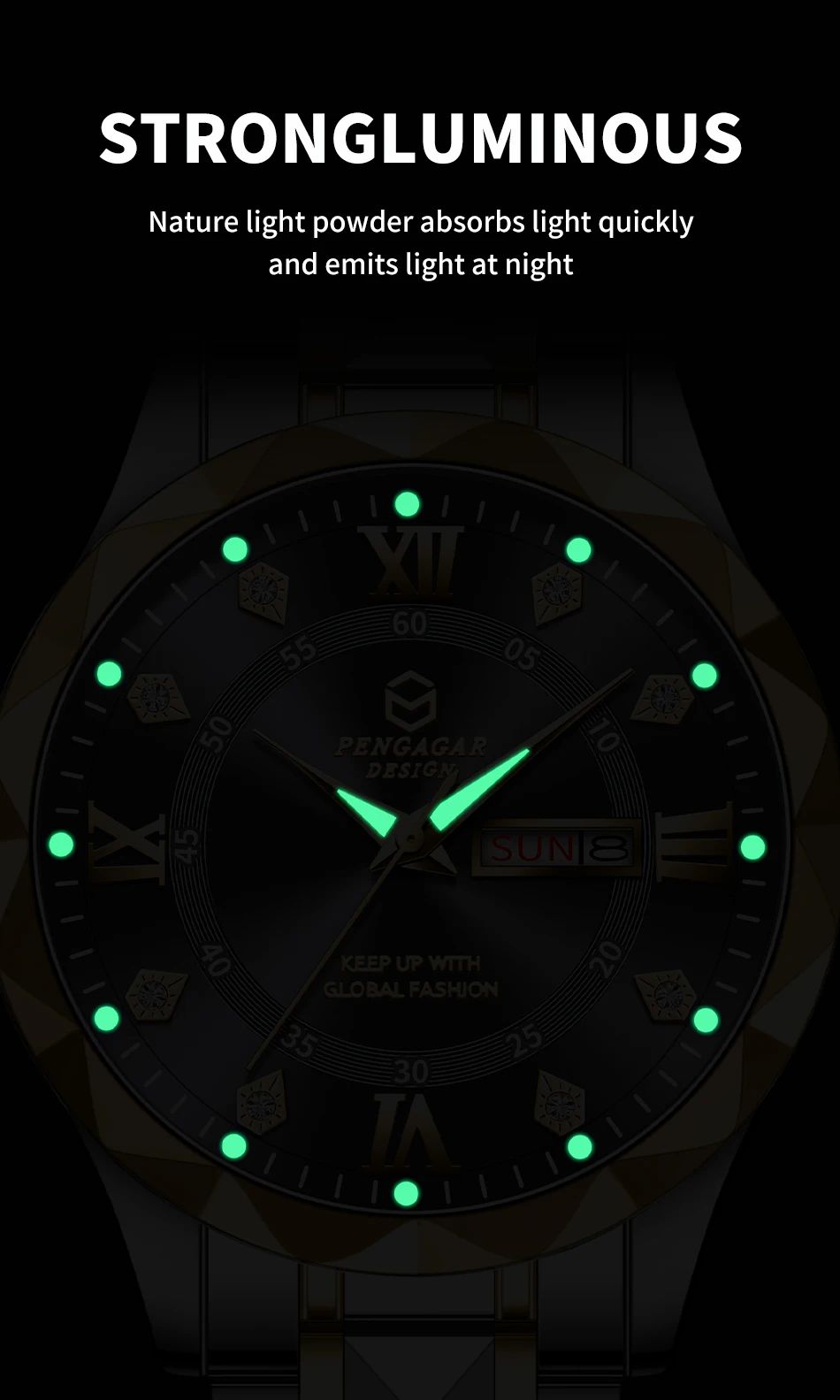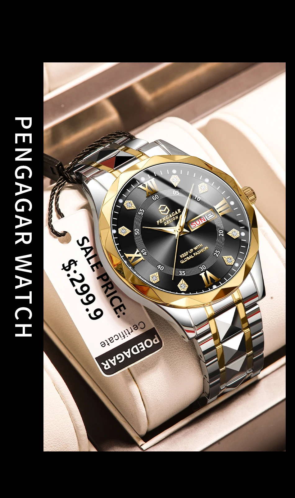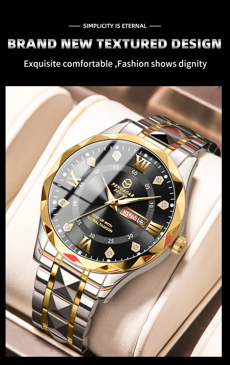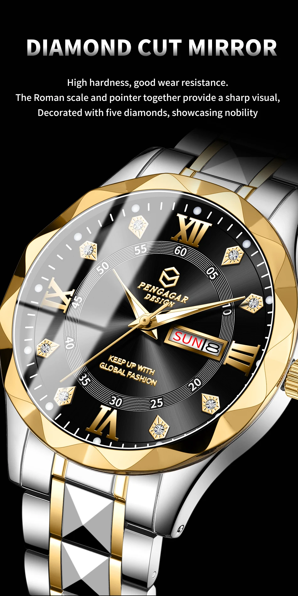 PENGAGAR Luxury Man Watch 30ATM Waterproof Chronograph Luminous Men’s Wristwatch Stainless steel