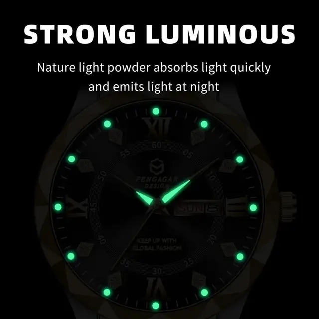 PENGAGAR Luxury Man Watch 30ATM Waterproof Chronograph Luminous Men’s Wristwatch Stainless steel